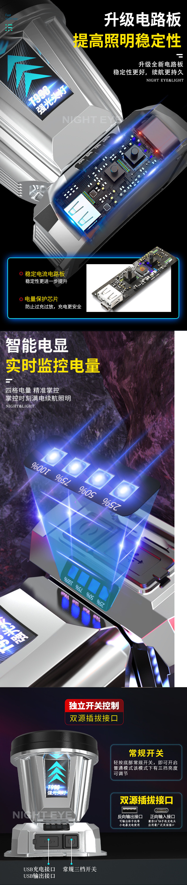 • 백색광/Type-C 충전/충전식 휴대폰/전기 디스플레이/H8 코어 하이라이트 [38000F]