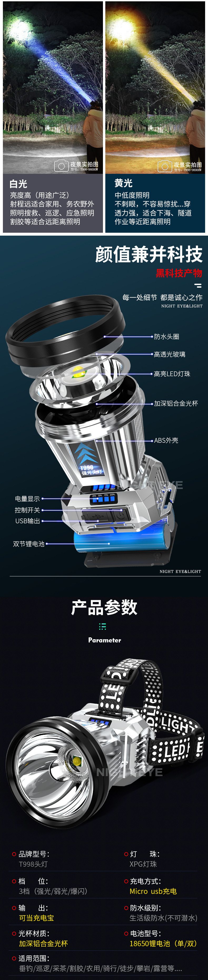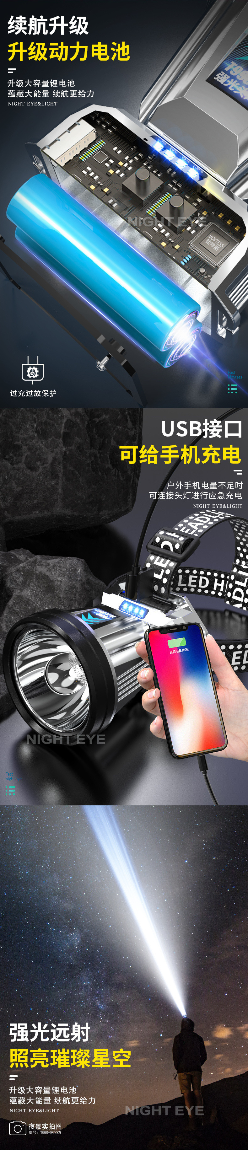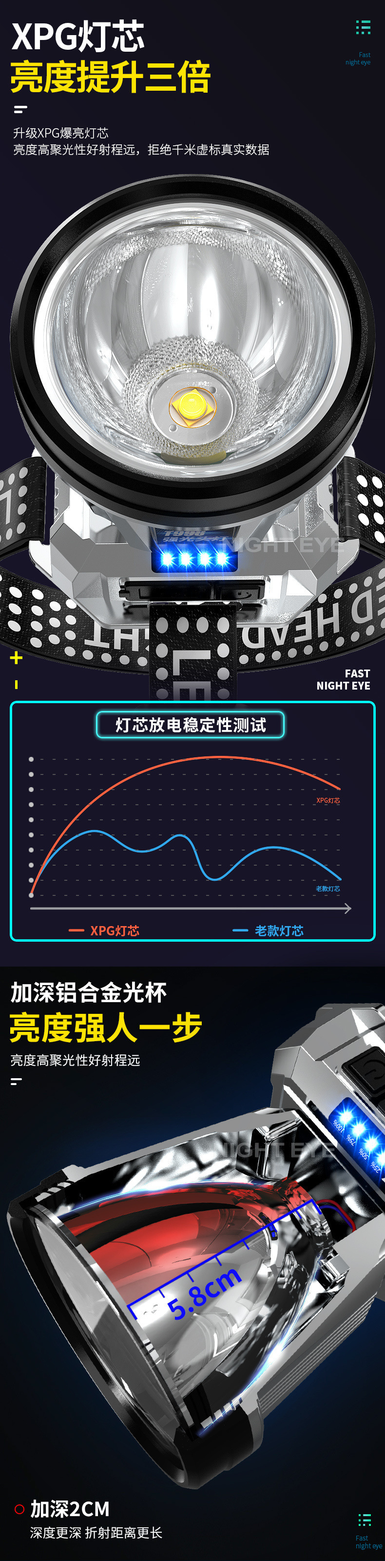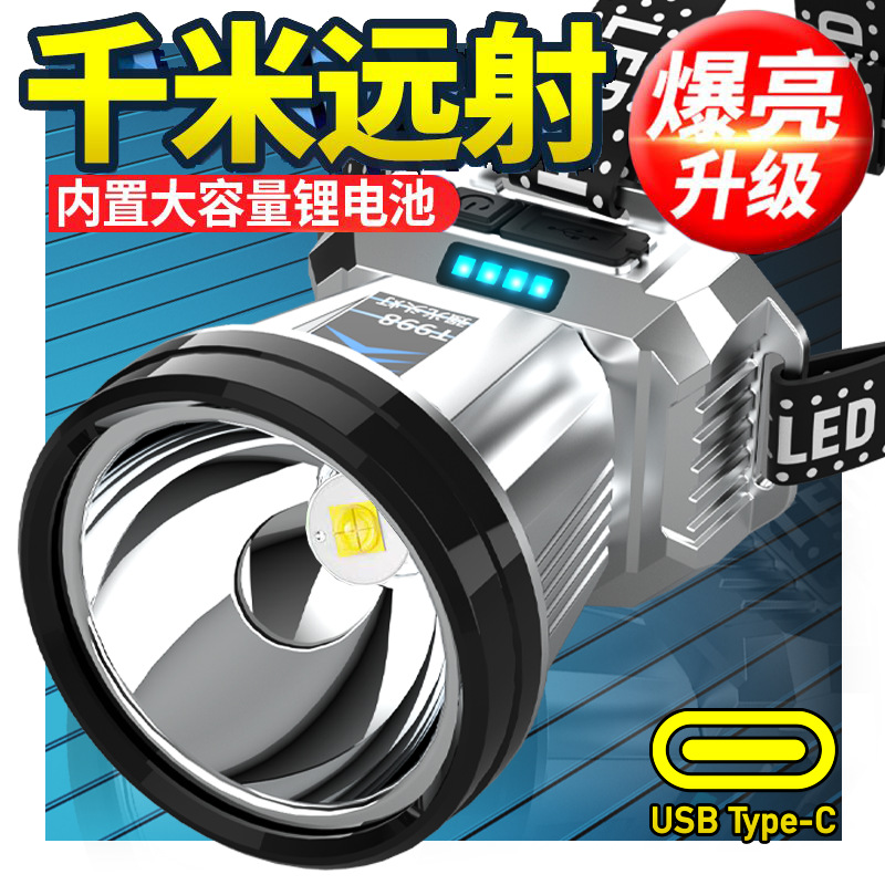 LED 전조등 강한 빛 장거리 충전식 방수 슈퍼 밝은 머리 장착 야간 낚시 램프 광산