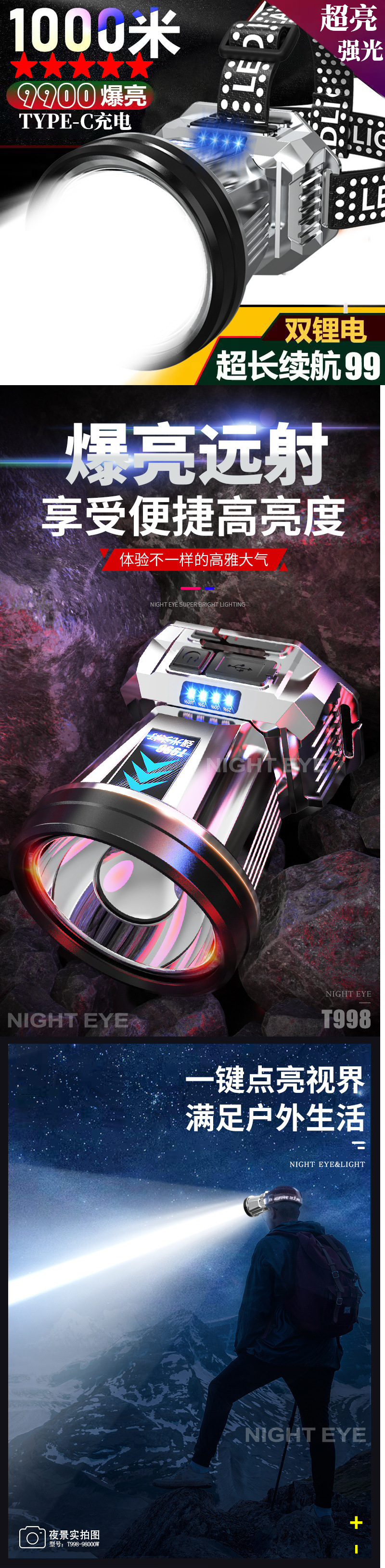 • 백색광/Type-C 충전/충전식 휴대폰-전자 디스플레이/H12 코어 슈퍼 브라이트[59000F]