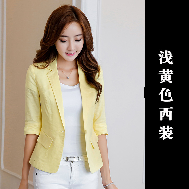 [캐주얼 조커] 작은 세트 여성 중간 소매 짧은 새 슬림 핏 얇은 세트 코튼 리넨 캐주얼 세븐 슬리브 어퍼