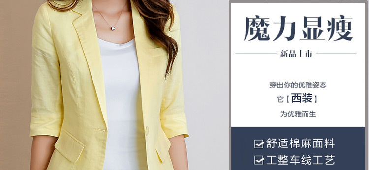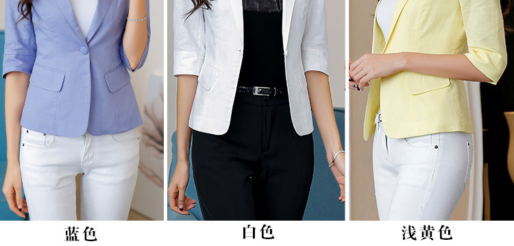 [캐주얼 조커] 작은 세트 여성 중간 소매 짧은 새 슬림 핏 얇은 세트 코튼 리넨 캐주얼 세븐 슬리브 어퍼스토어 가기