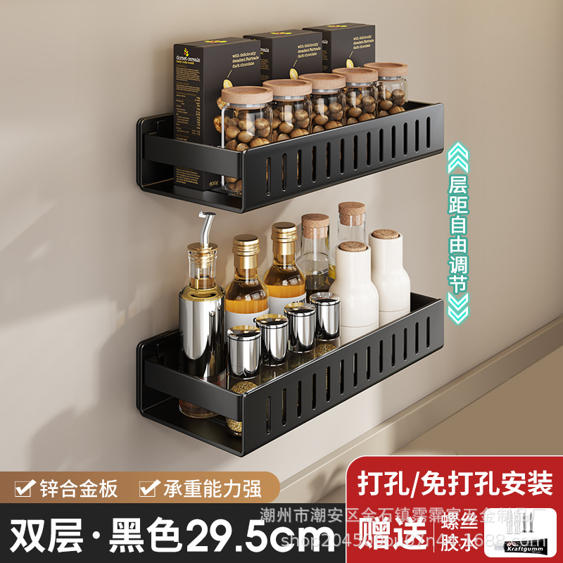 욕실과 화장실 벽에 구멍을 뚫을 필요가 없는 새로운 중국 스타일의 수납 선반, 주방 조미료 및 조미료 벽걸이 선반