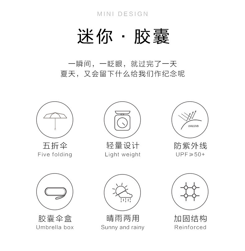 미니 50% off 태양 우산 여성 태양 보호 우산 안티 UV 이중 목적 태양 그늘 우산 소형 휴대용 캡슐 우산스토어 가기