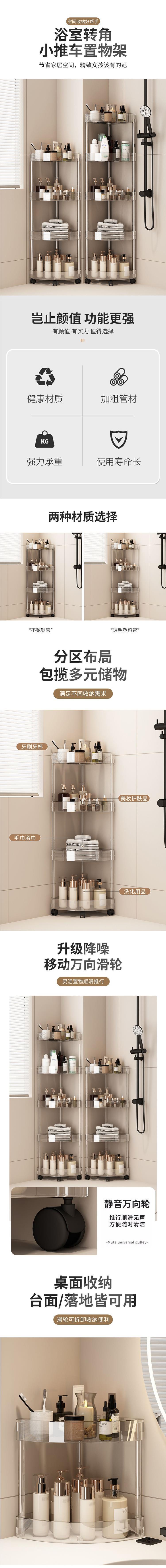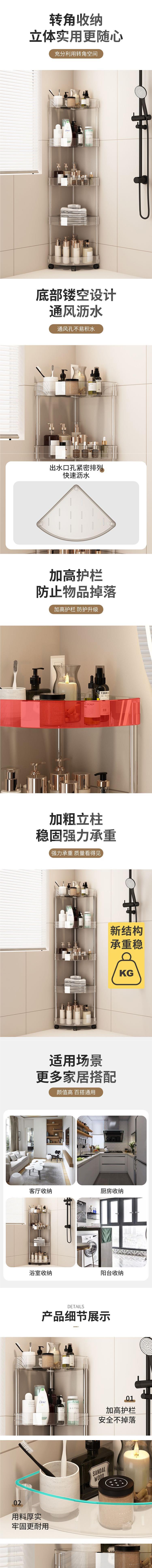 스테인레스 스틸 투명 주방 바닥에서 천장까지 다층 삼각형 화장실 선반 코너 선반 욕실 화장실 보관스토어 가기