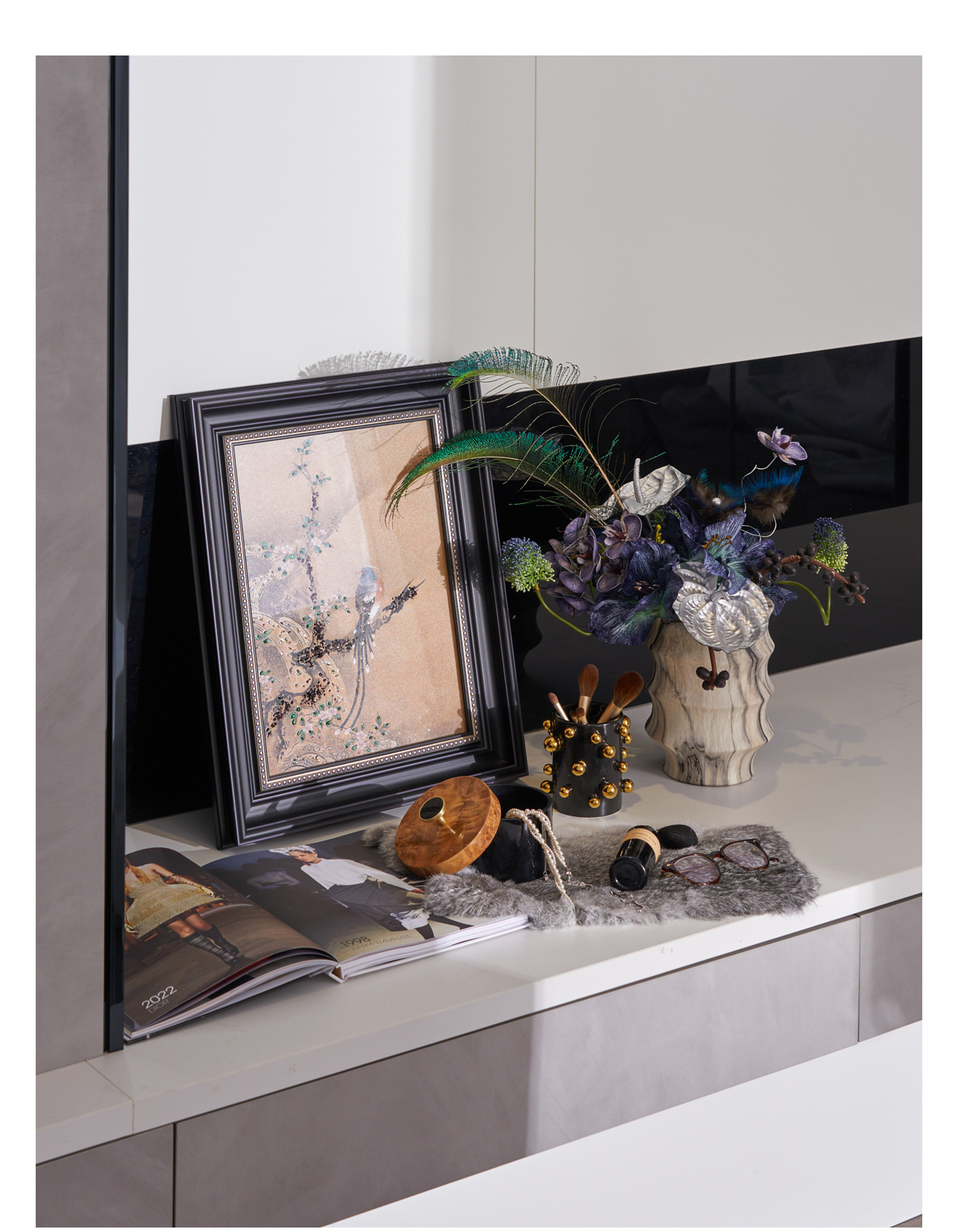 입구 카페 분위기 레이아웃 라이트 럭셔리 하이 엔드 거실 보관 보석 장식 상자 꽃병 꽃 배열 장식품스토어 가기