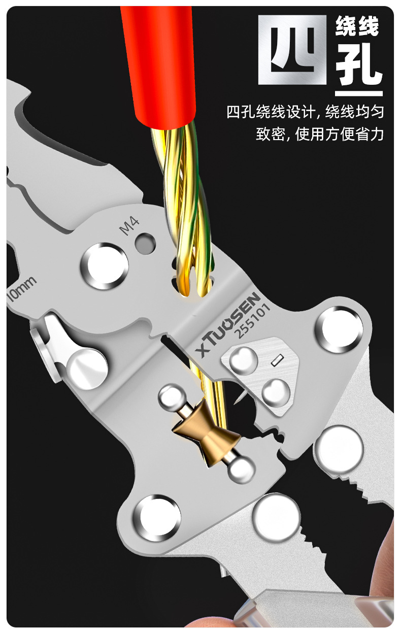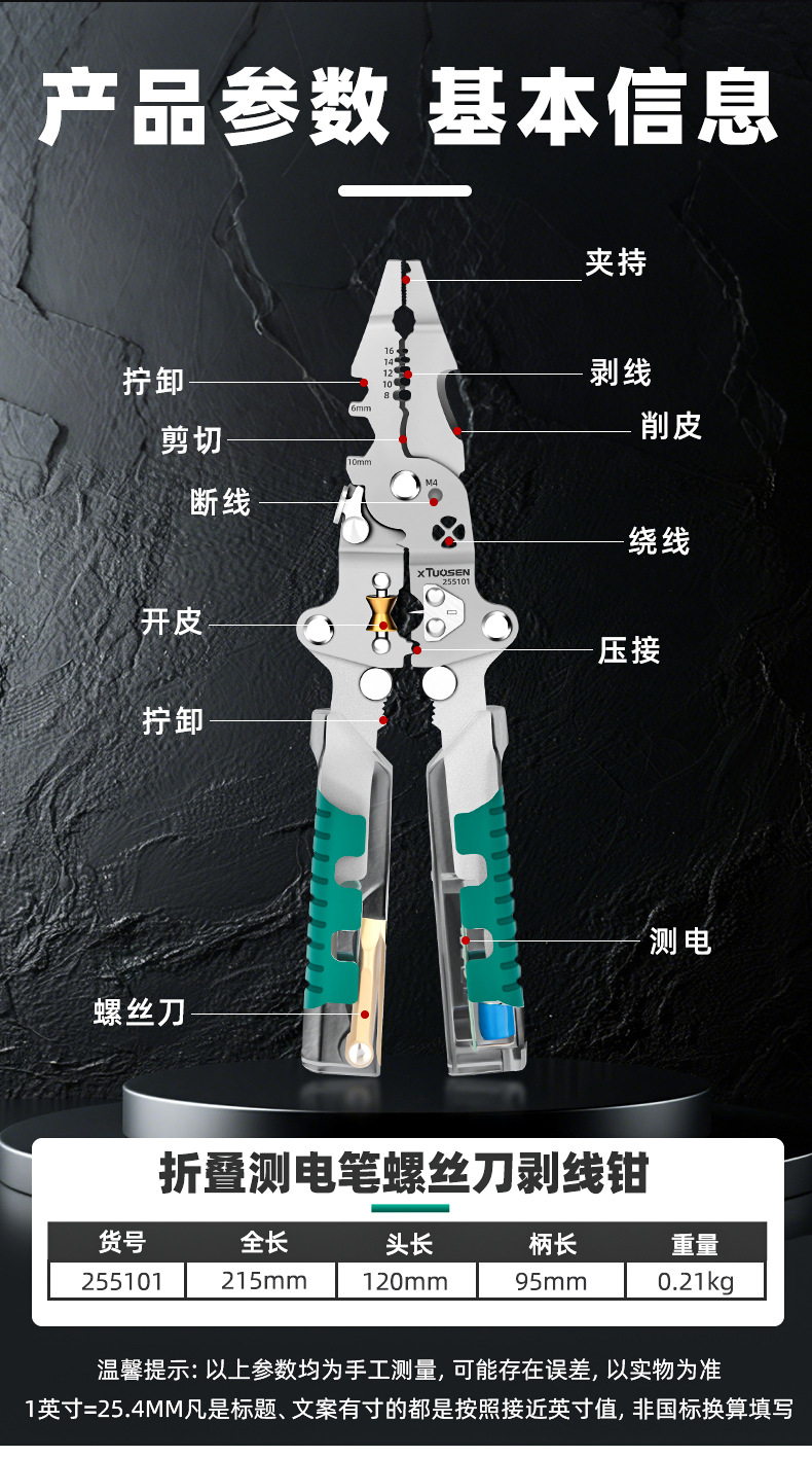 투오 센 전기 특수 도구 측정 및 측정 와이어 윈딩 와이어 프레스 플라이어 전기 전기 접기 다기능 와이어 스트리핑 펜치스토어 가기