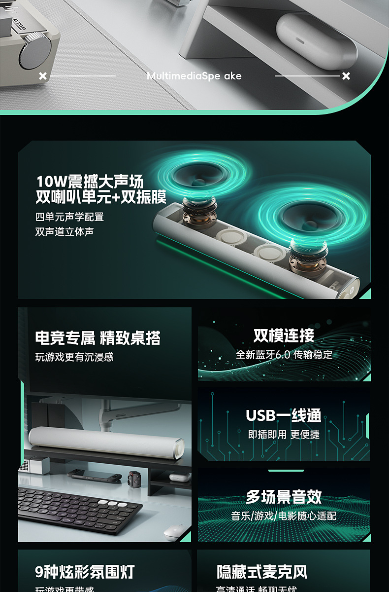 HP 컴퓨터 스피커 데스크탑 소음 감소 마이크 Bluetooth 오디오 데스크탑 e-스포츠 게임 서브우퍼 홈 3 모드