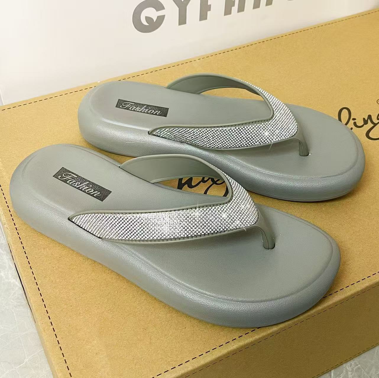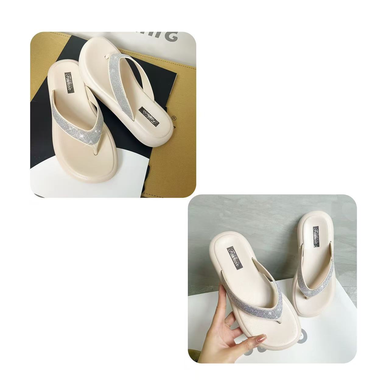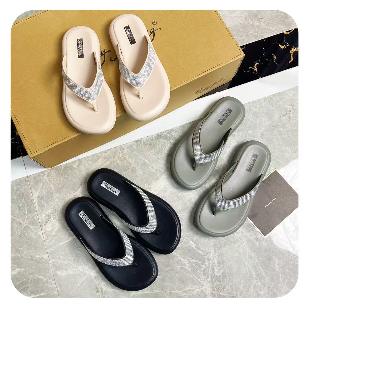 여성을위한 라인 석 두꺼운 밑창 플립 플롭 여름 새로운 겉옷 패션 요정 스타일 스커트 플립 플롭 비치 샌들스토어 가기