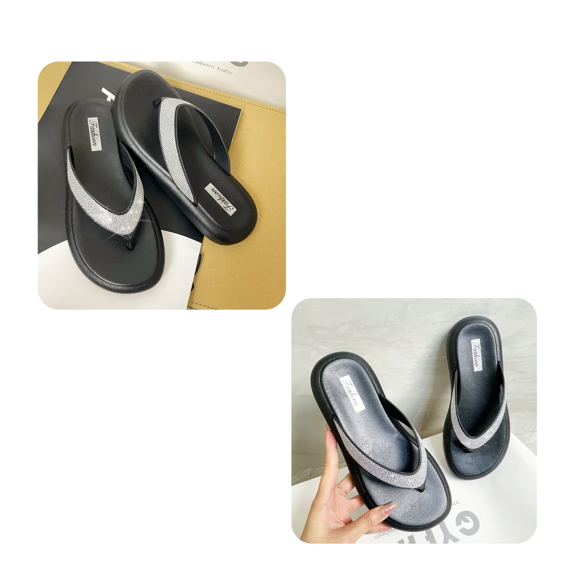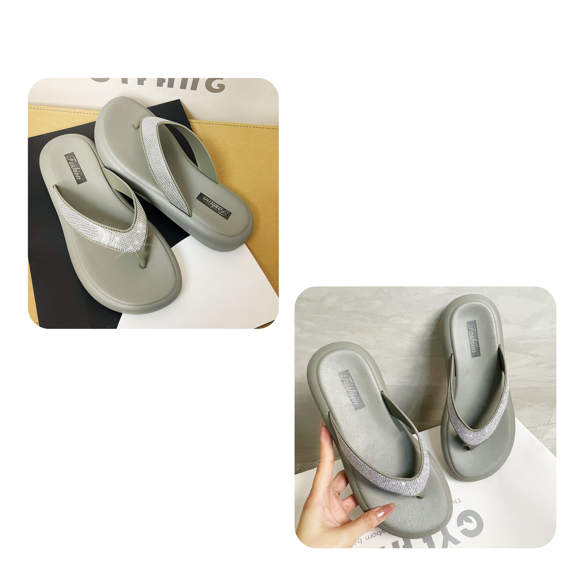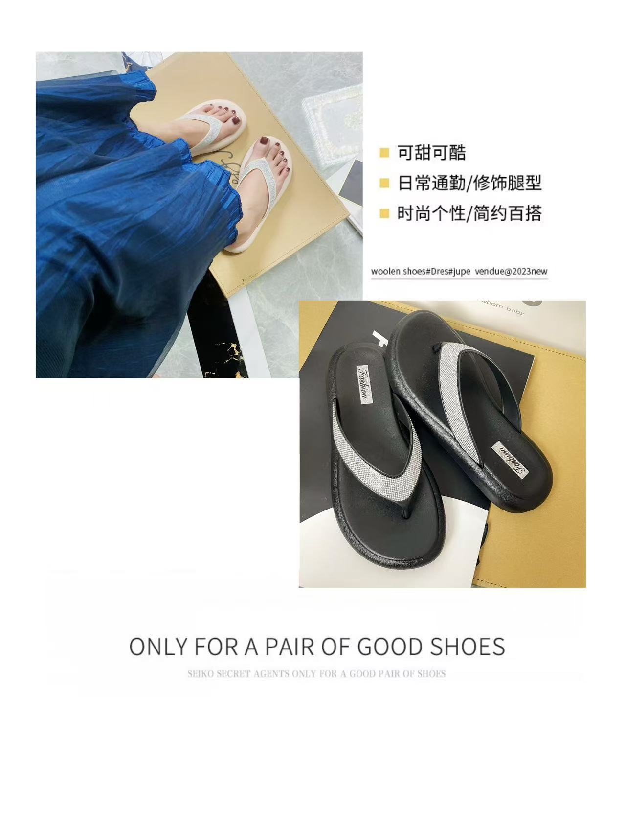 여성을위한 라인 석 두꺼운 밑창 플립 플롭 여름 새로운 겉옷 패션 요정 스타일 스커트 플립 플롭 비치 샌들스토어 가기