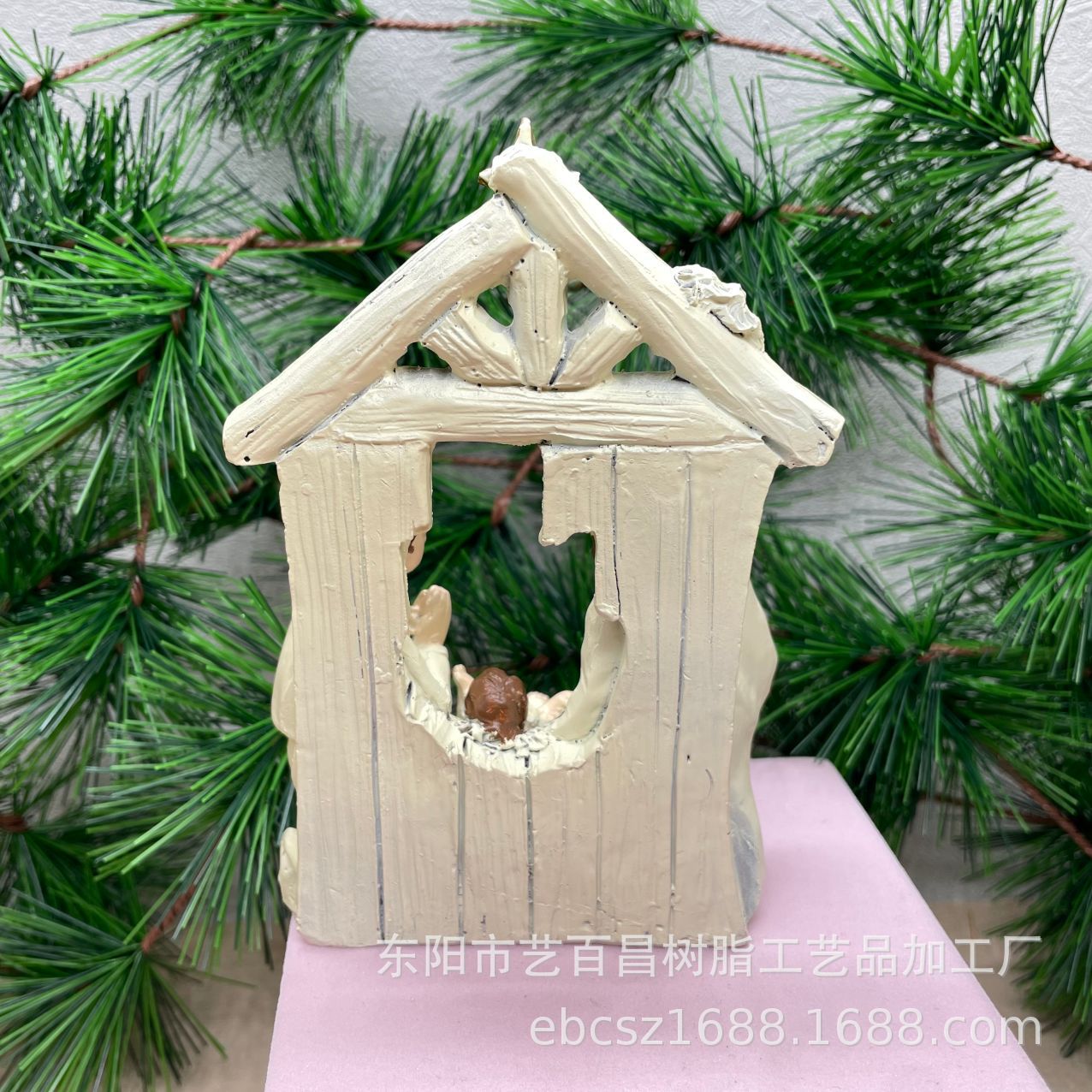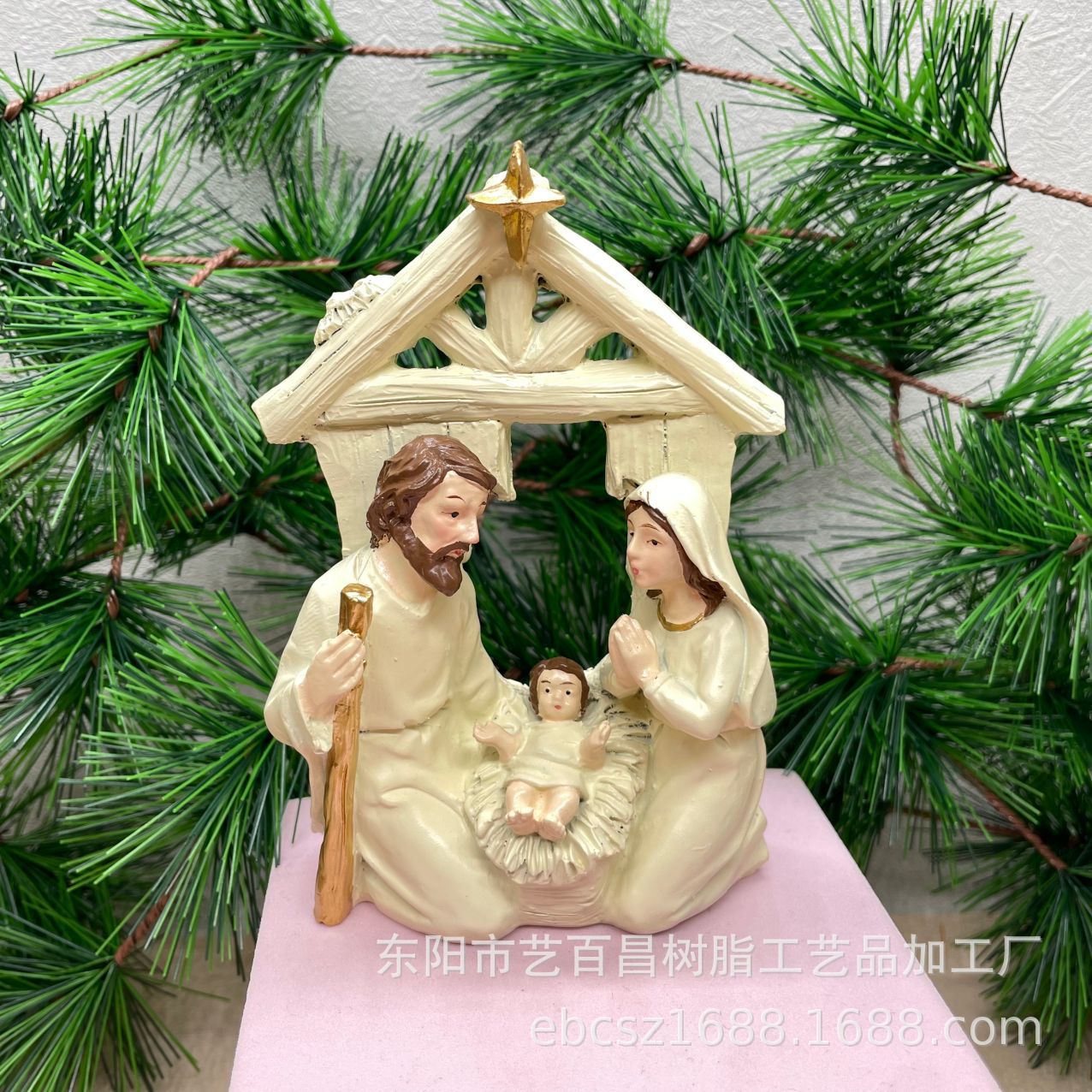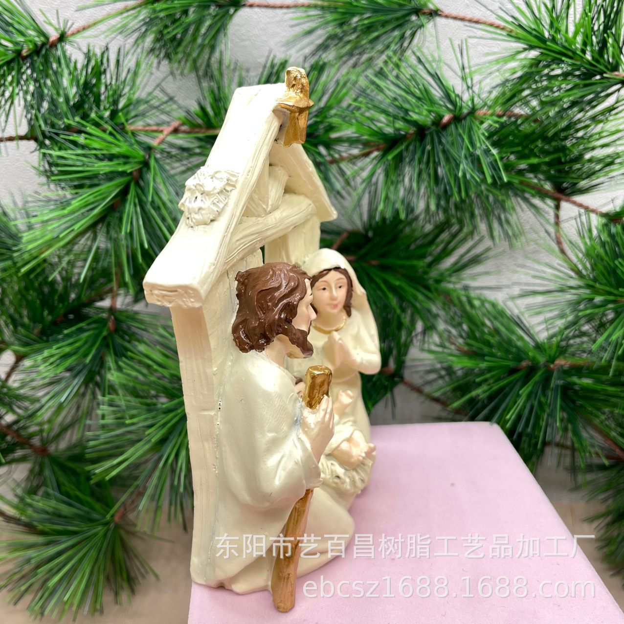 크리스마스 장식을위한 인기있는 목조 주택 성가족 동상의 국경 간 특별 공급 수지 공예품 홈 데스크탑 장식품스토어 가기