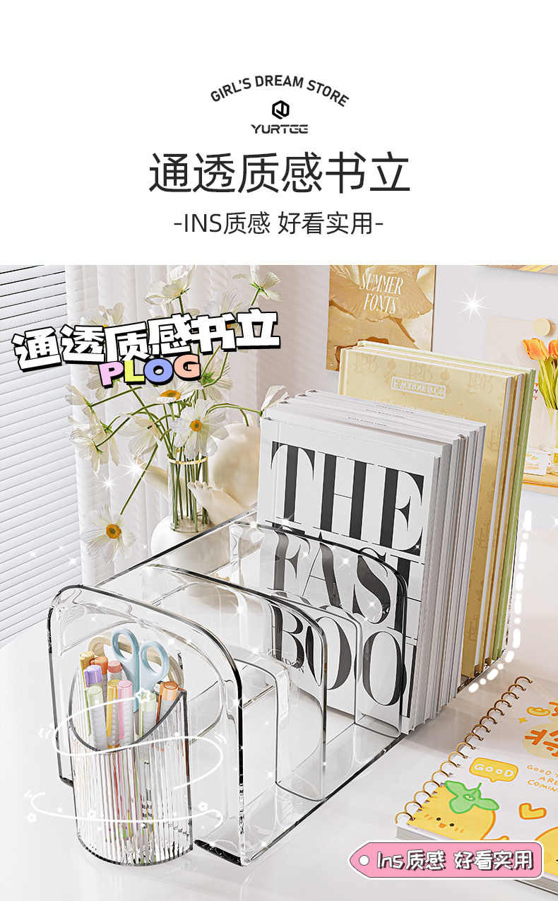 데스크탑 책장 수납함 투명 학생 책 책상 스탠드 칸막이 아크릴 펜 홀더 수납 선반