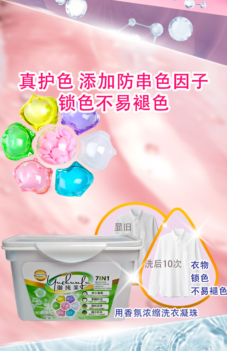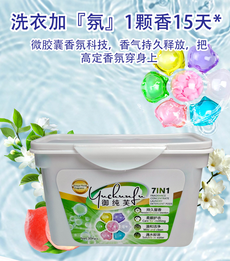 Yuchunfu 농축 7 챔버 세탁 비즈는 청소, 오염 제거 및 향기 유지를 제공합니다. 국경 간 영어 버전 7-in-1 세탁 비즈 제조업체스토어 가기