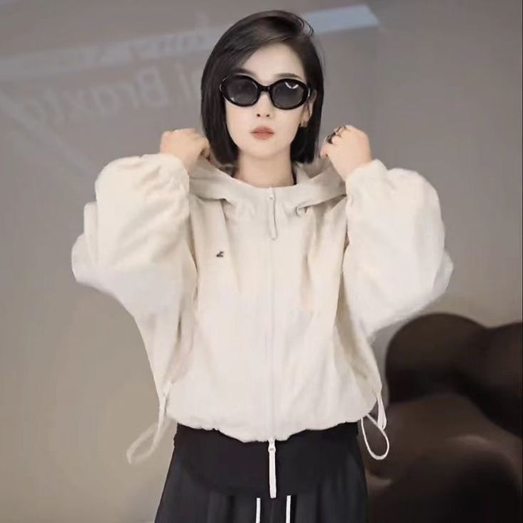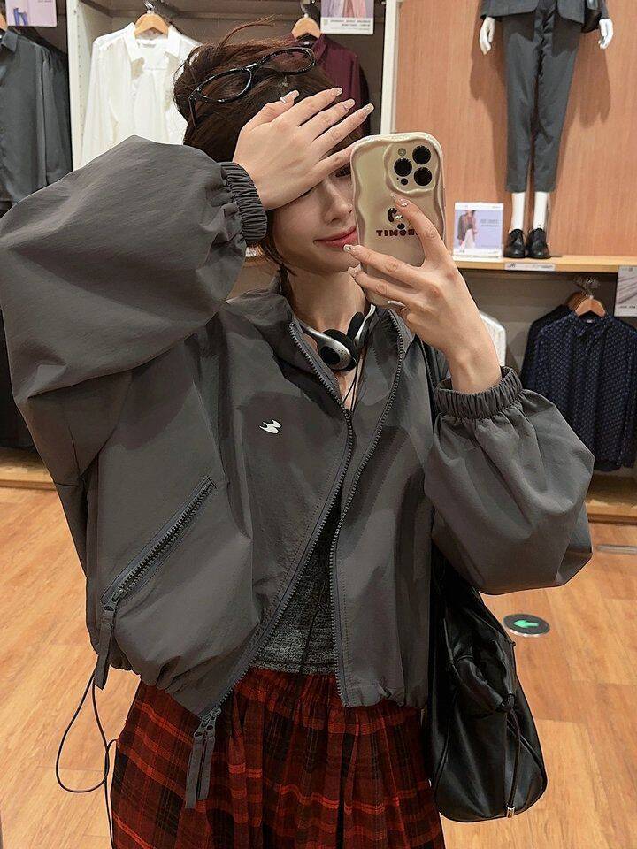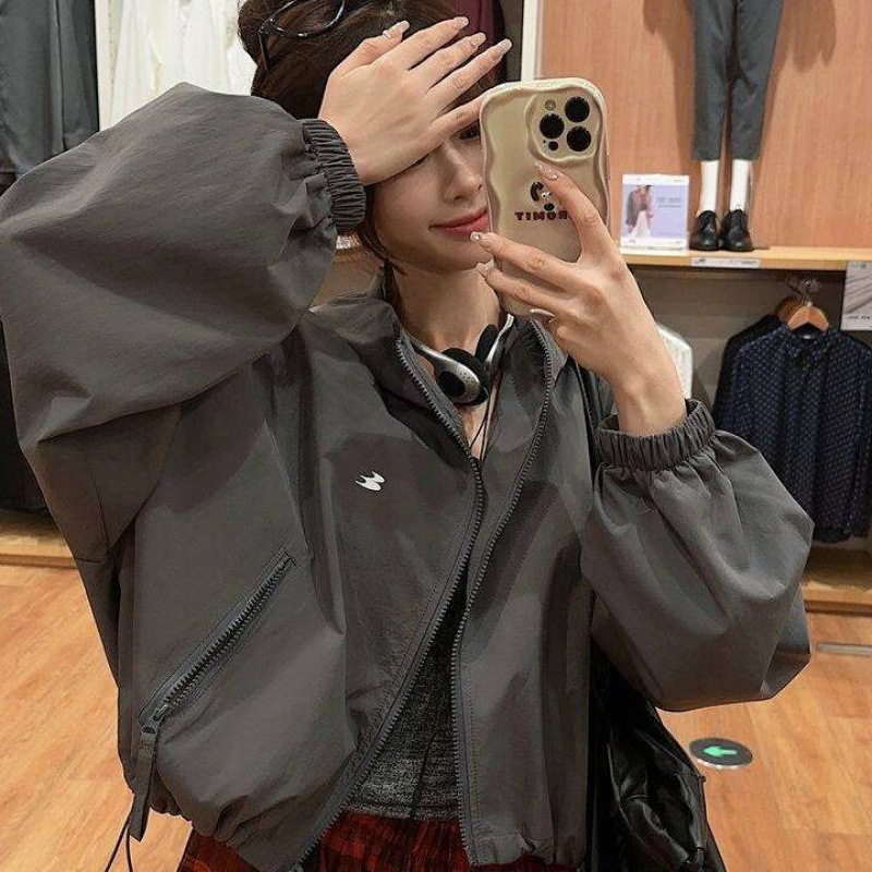 작은 봄, 가을 새로운 스타일의 재킷 짧은 후드 패션 루즈 캐주얼 재킷 탑 여성용스토어 가기