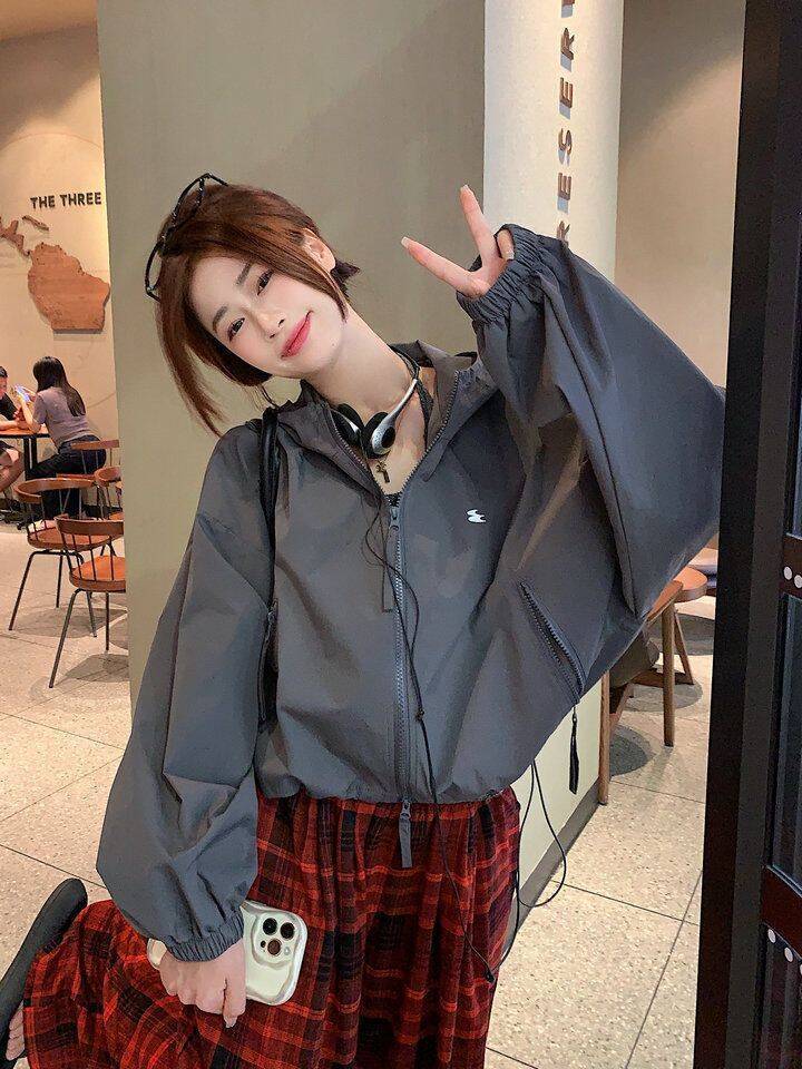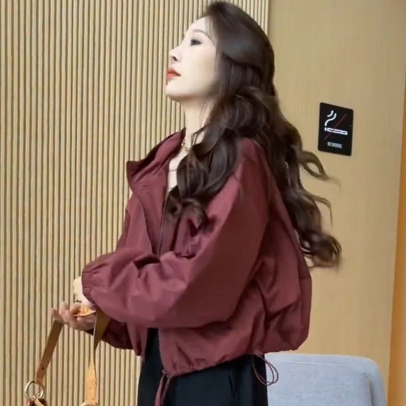 작은 봄, 가을 새로운 스타일의 재킷 짧은 후드 패션 루즈 캐주얼 재킷 탑 여성용