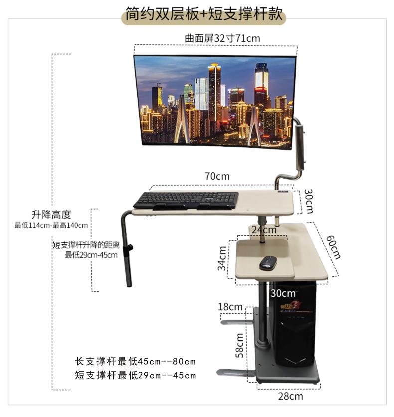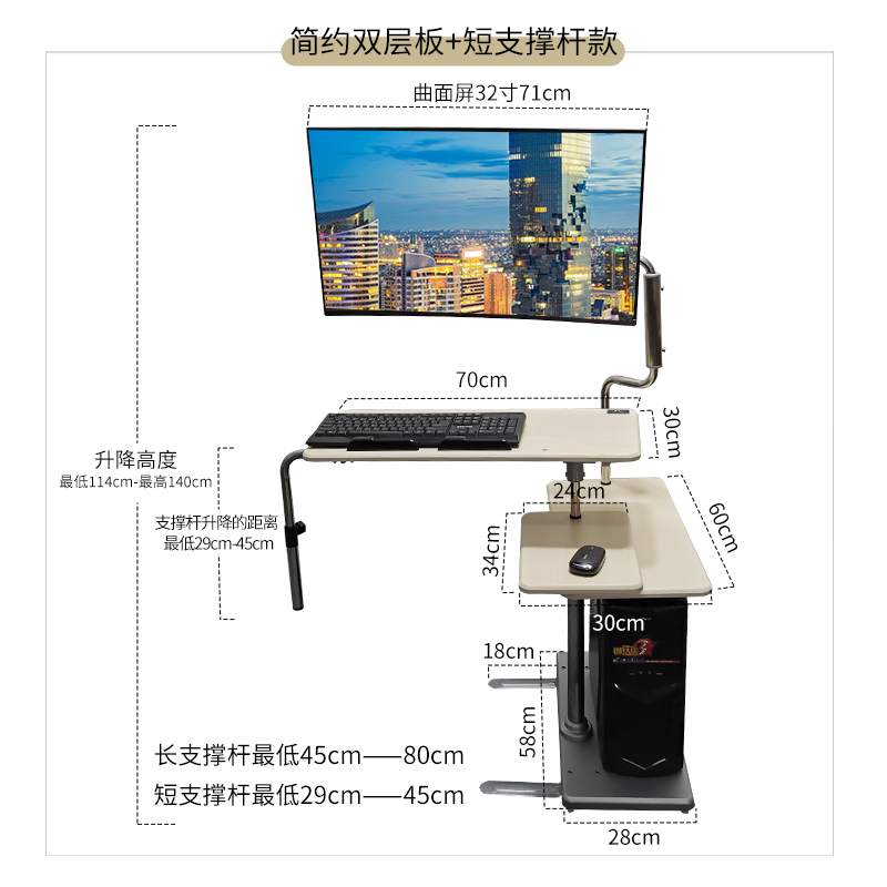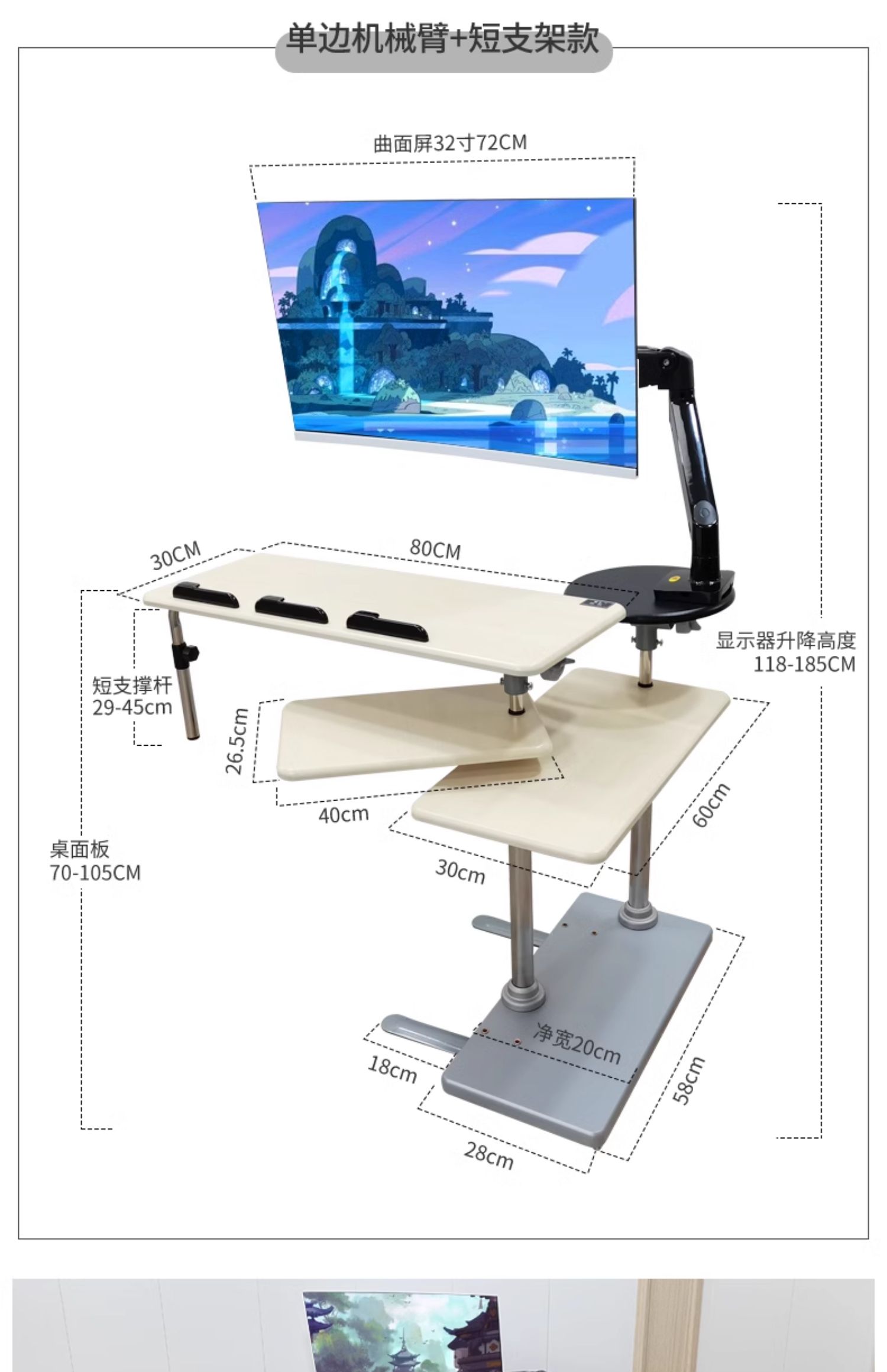 • 11.70 심플 업그레이드 버전 + 마우스보드, 의자에 앉기, 19~32inch 스크린 특수 모델, 오른손잡이용, 화이트 메이플 컬러, 확장된 지지대