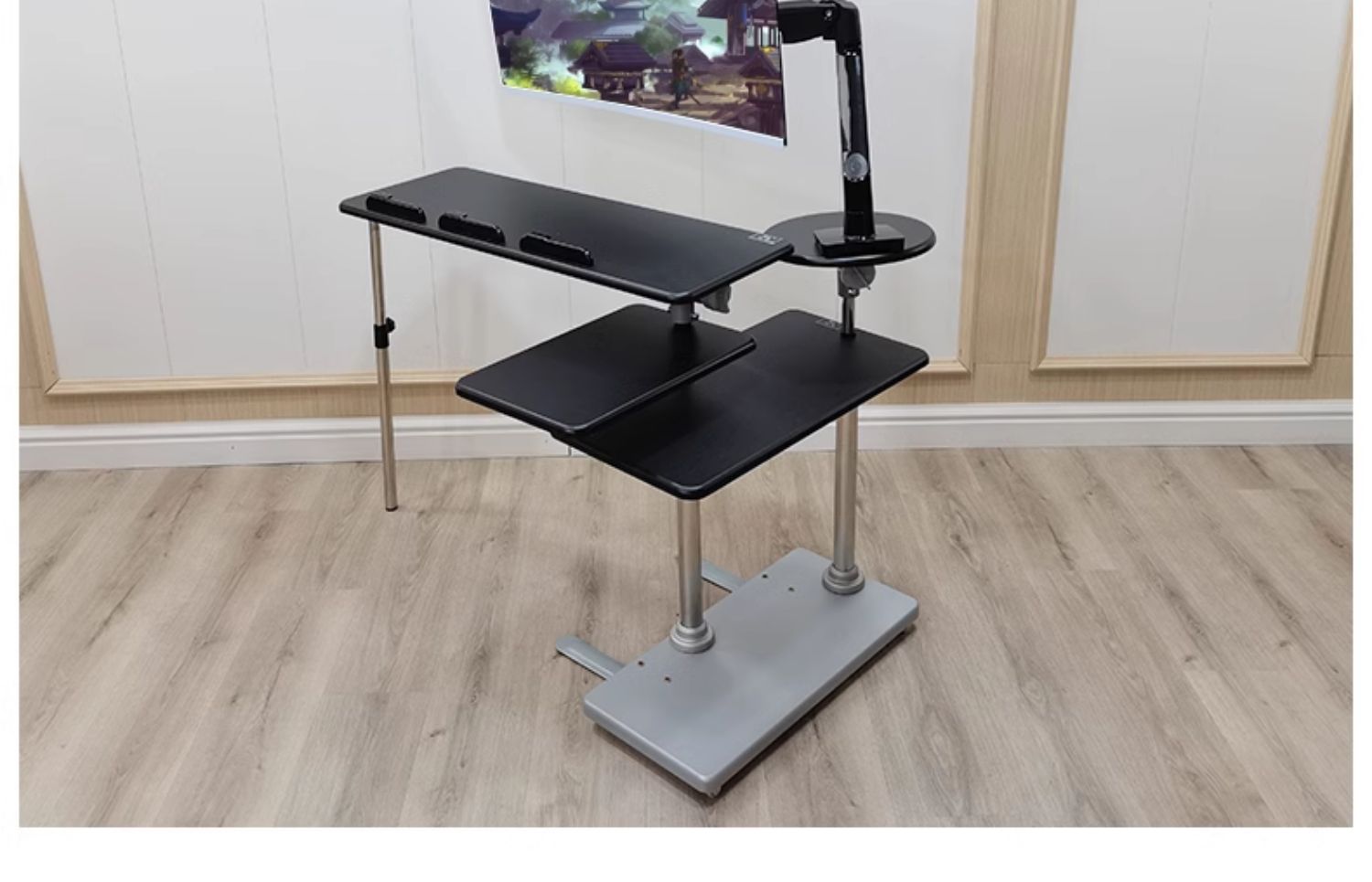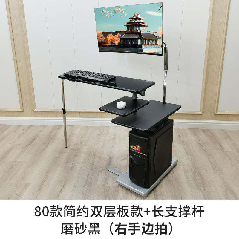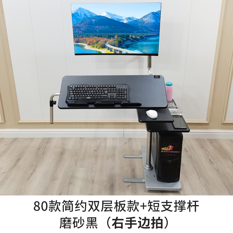 • 9.80 단순 이중 레이어 보드 확장 데스크탑, 짧은 지지대, 오른손 측면 촬영, 무광택 검정색