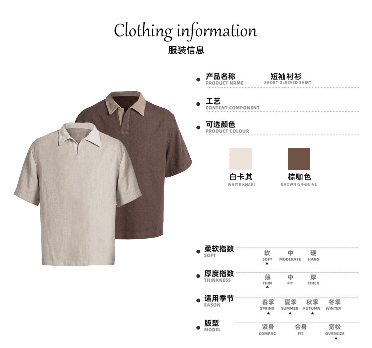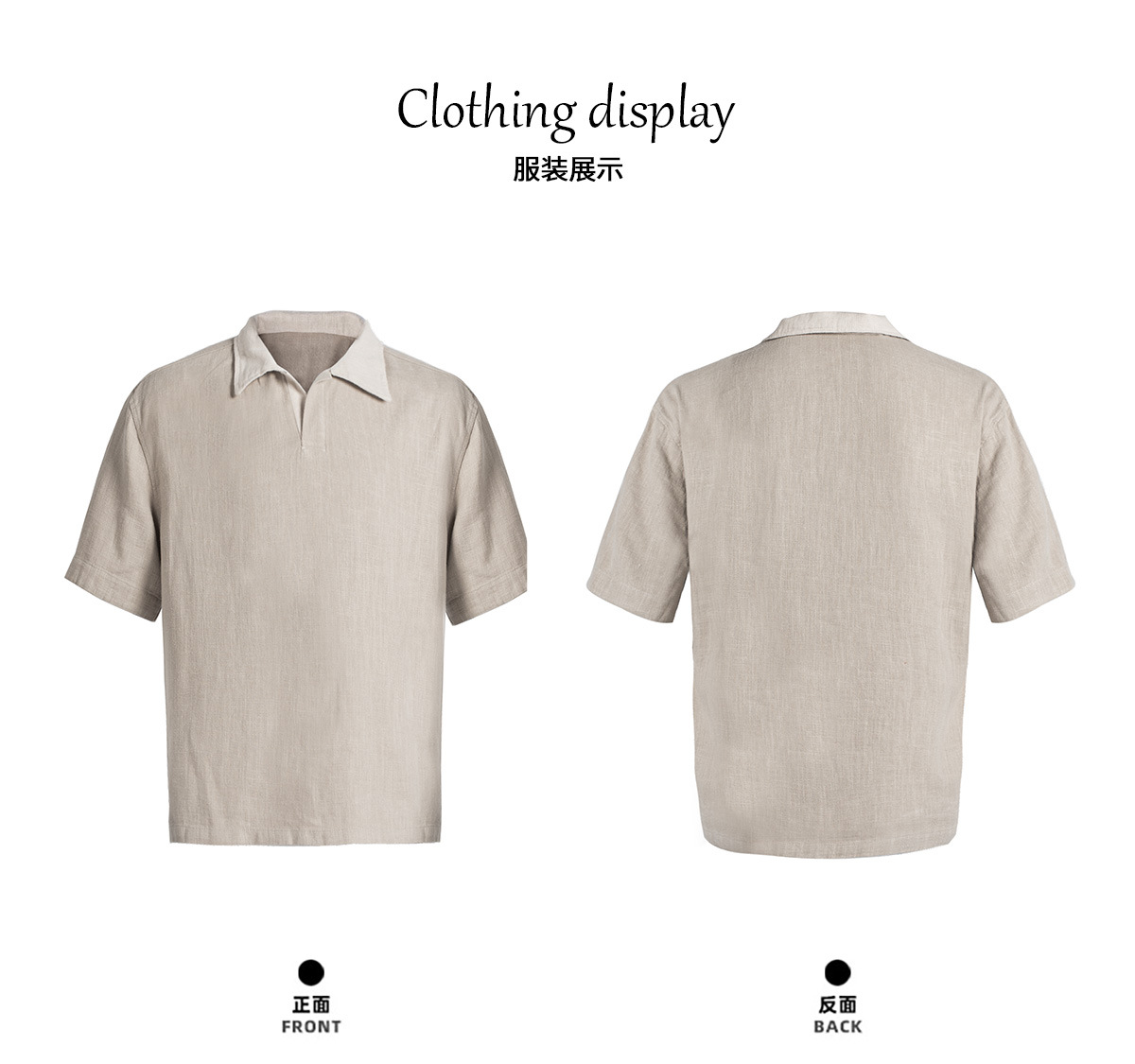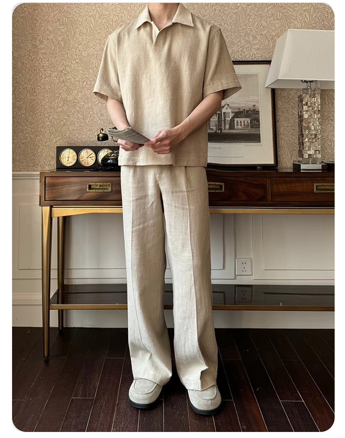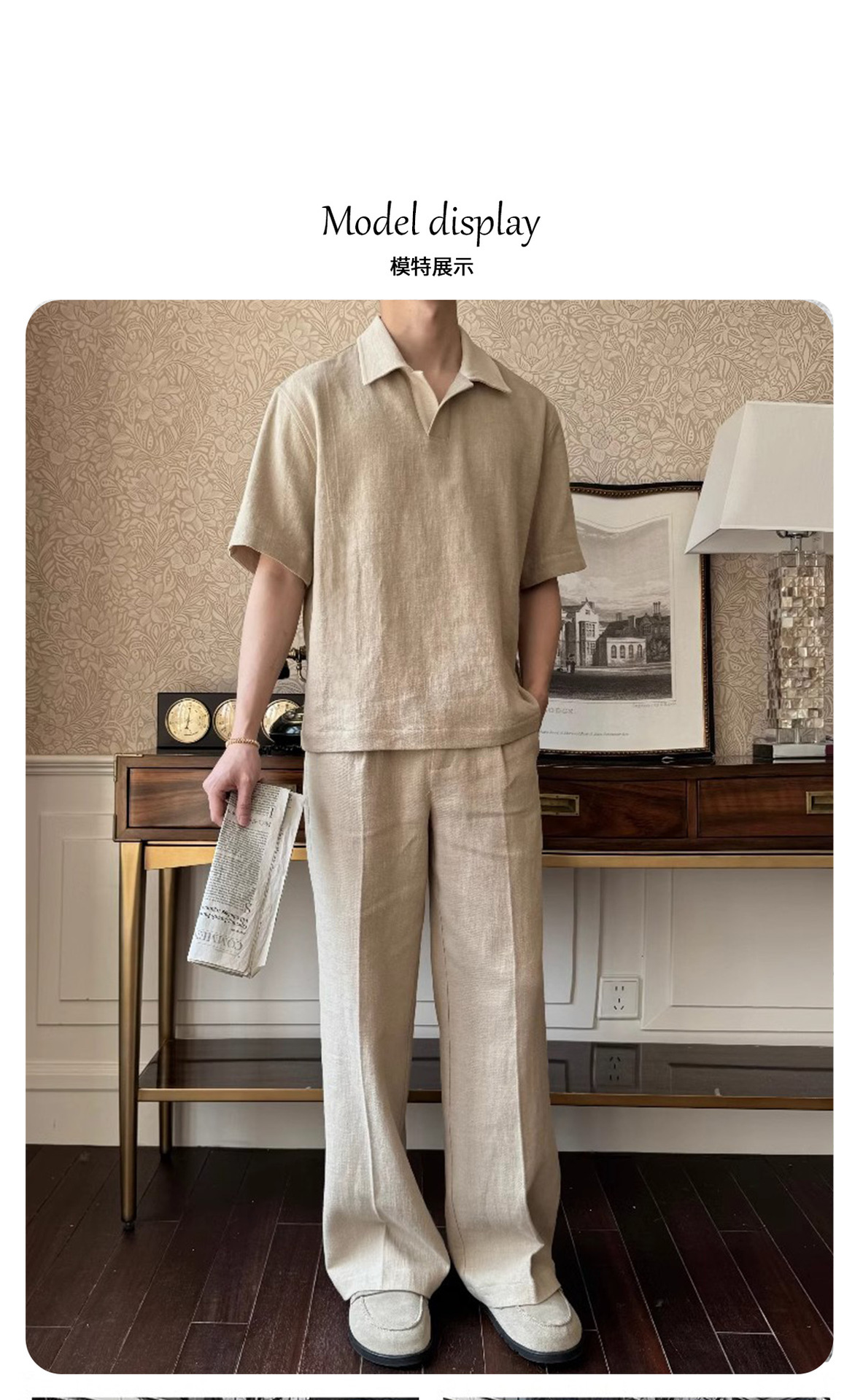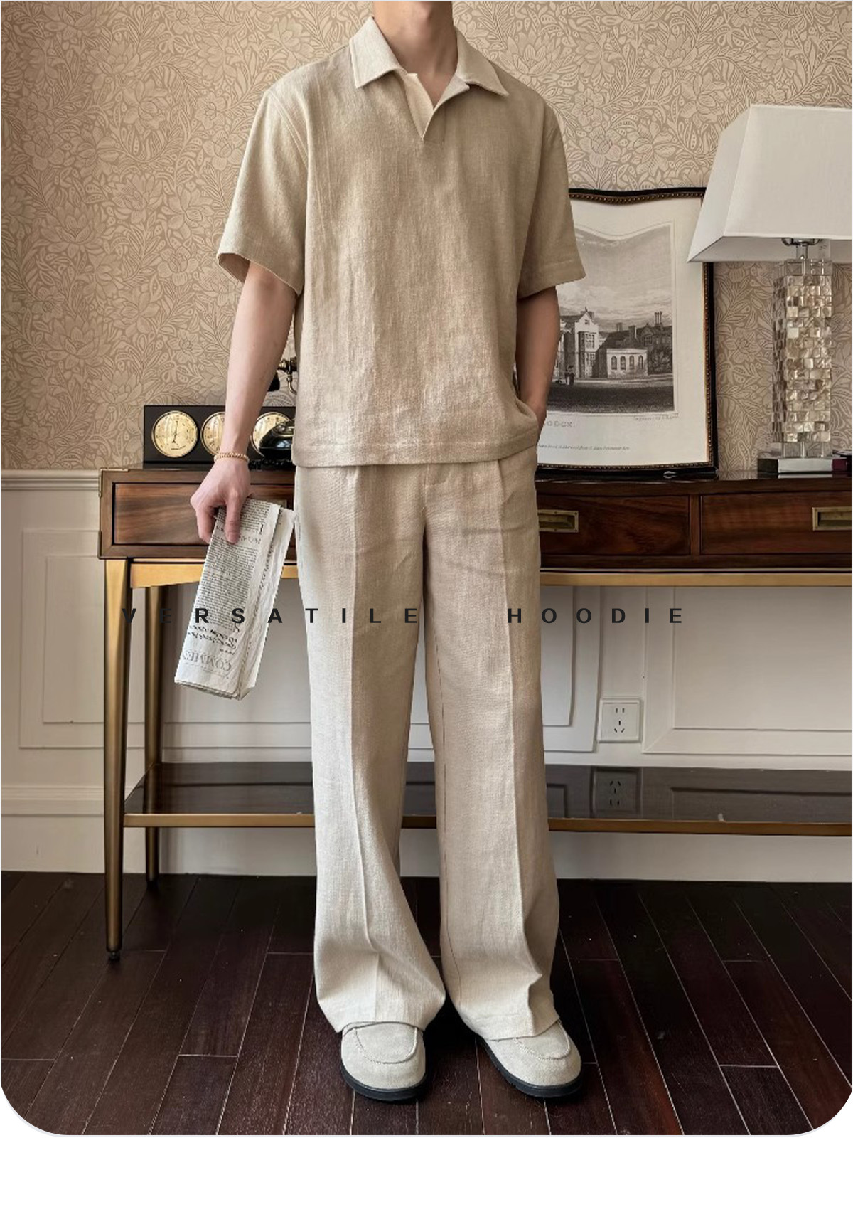 【CSMY】DESERTO 70 린넨 혼방 코튼 및 린넨 대비 컬러 폴로 칼라 캐주얼 올드 머니 스타일 남성용 반팔 셔츠
