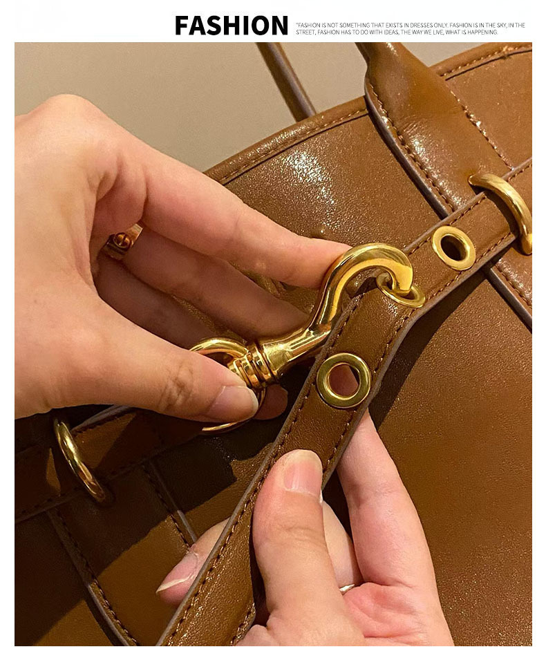 레트로 베지터블 태닝 백 토트 백 인터넷 연예인 패션 다용도 벨트 버클 휴대용 대용량 겨드랑이 가방 서류 가방 새로운 스타일스토어 가기