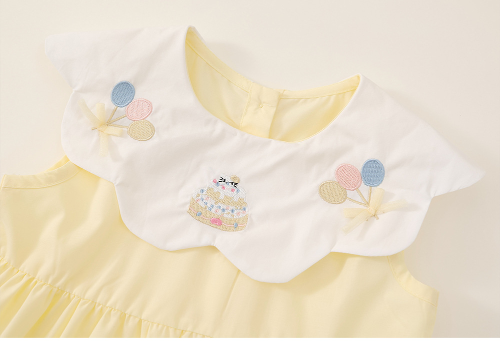 MDD 여자 드레스 2025 여름 새로운 자수 인형 칼라 공주 드레스 유행 밝은 노란색 민소매 스커트스토어 가기