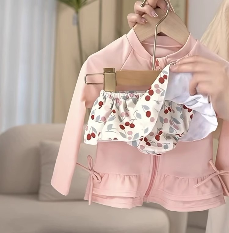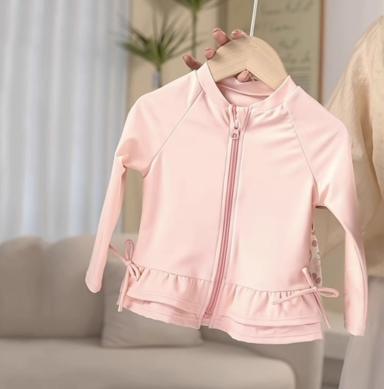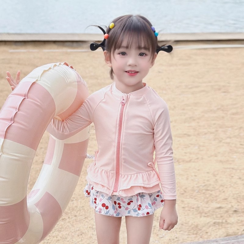 2025 여름 자외선 차단 긴팔 여아 스플릿 수영복, 가볍고 얇은 폴리에스터 아동 스플릿 수영복, 캐주얼하고 귀여운 스타일스토어 가기
