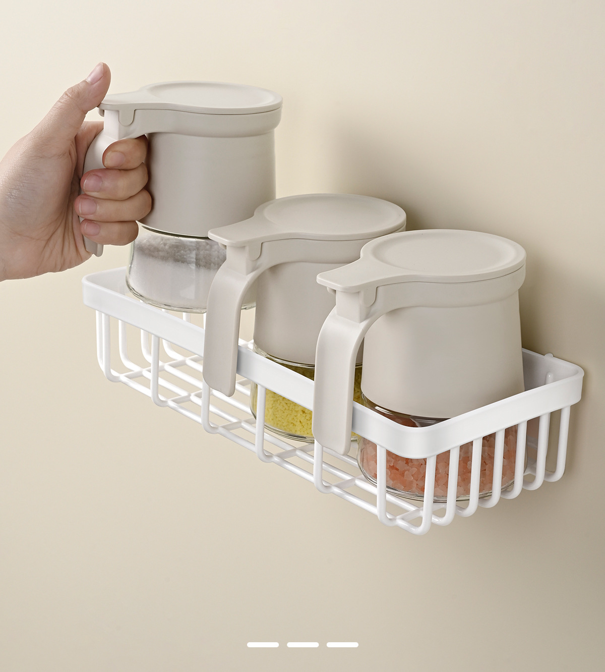 국경 간 조미료 항아리 식기 보관함 벽걸이 형 가정용 주방 다목적 펀치없는 보관함 PP 플라스틱