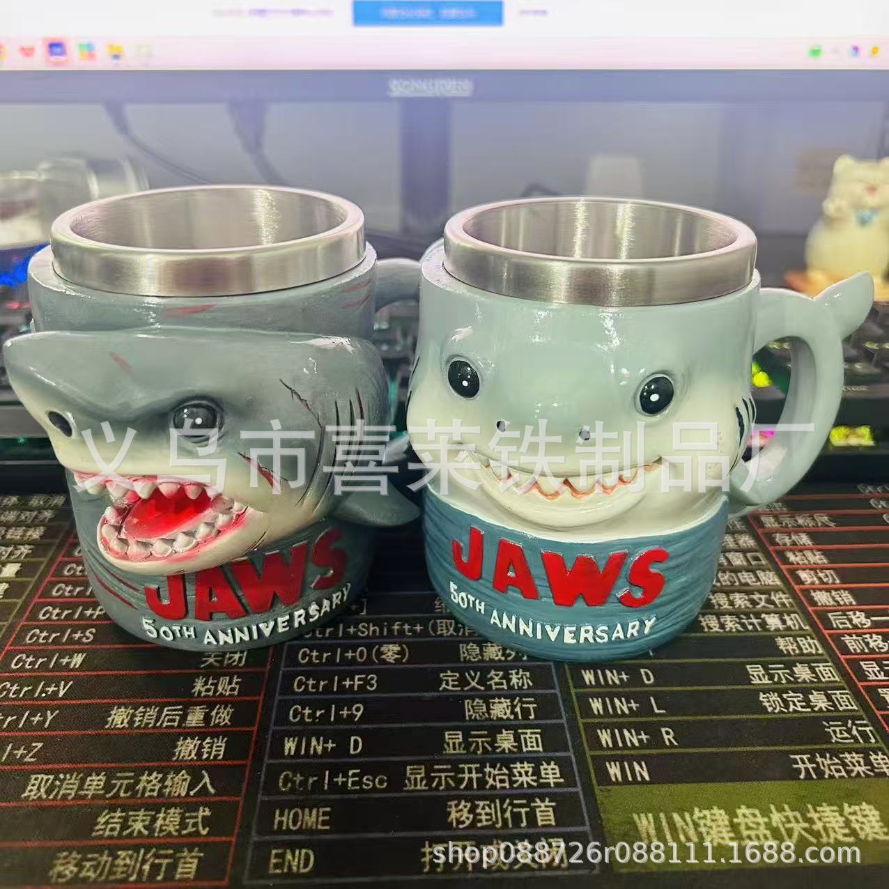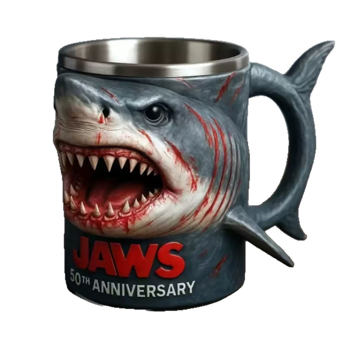 크로스 국경 새로운 그레이트 화이트 상어 컵 장식 디자인 턱 50 주년 3D 컵