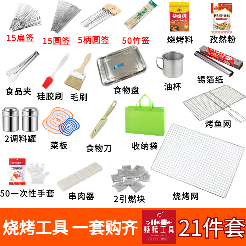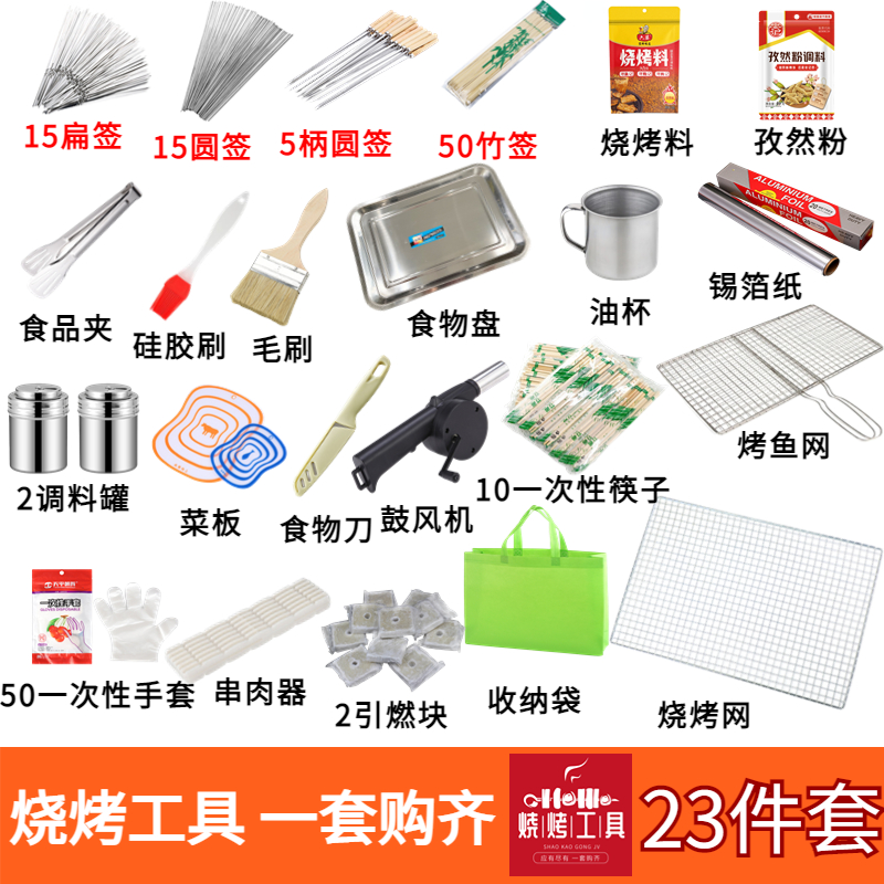 바베큐 도구 및 용품 세트, 가정용 휴대용 야외 캠핑 액세서리 전체 세트, 오븐 상업용 바베큐 도구스토어 가기