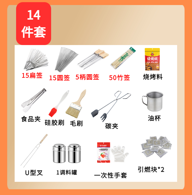 • ㊶㊉⑭⑪ⓧⓤⓉ✆兀14件套 烧烤工具套装