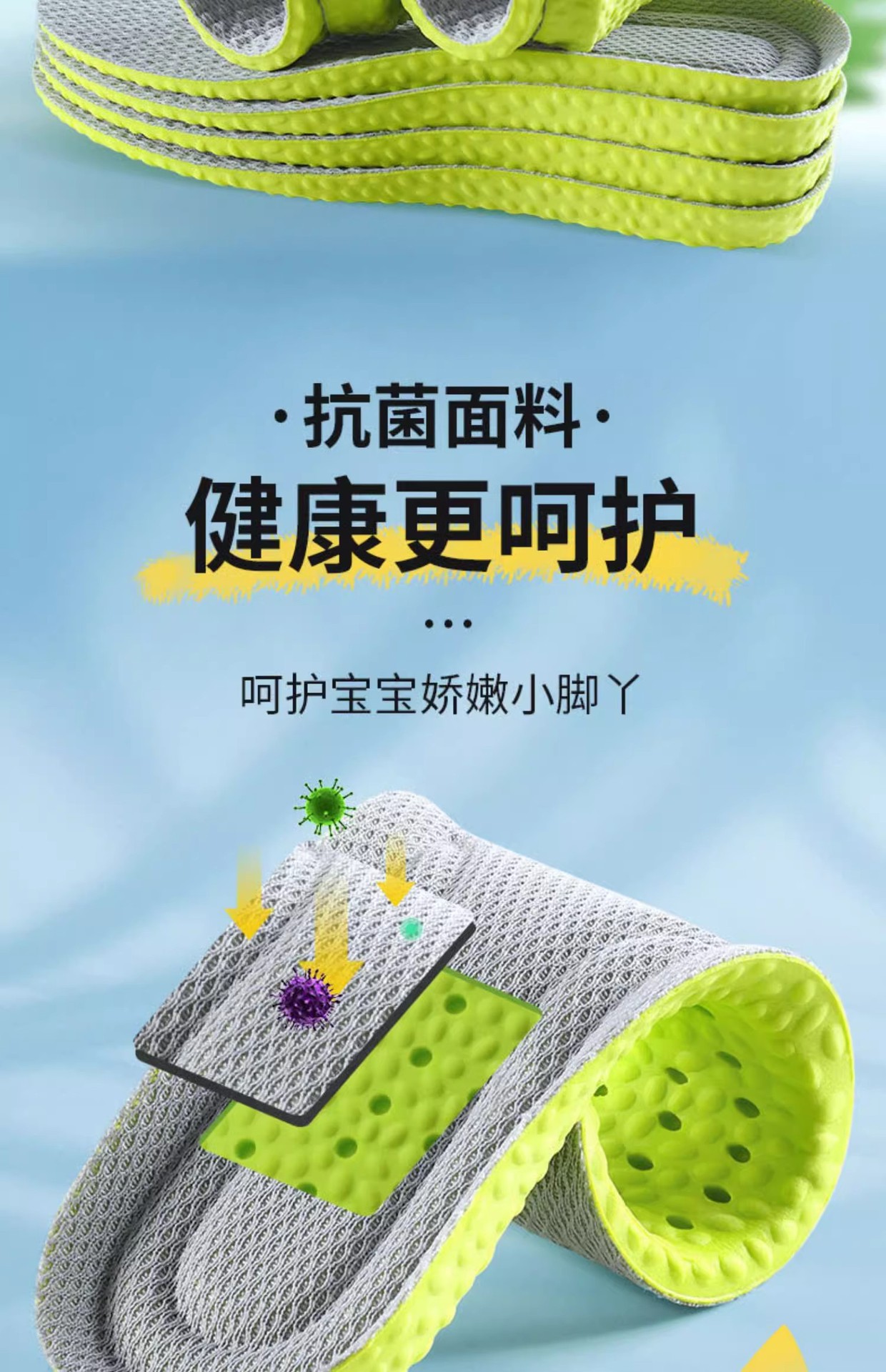 어린이 스포츠 깔창, 쑥, 통기성, 땀 흡수성, 탈취제, 고탄성, 충격 흡수성, 똥 밟는 느낌, 남녀 아기 전용, 가을 겨울