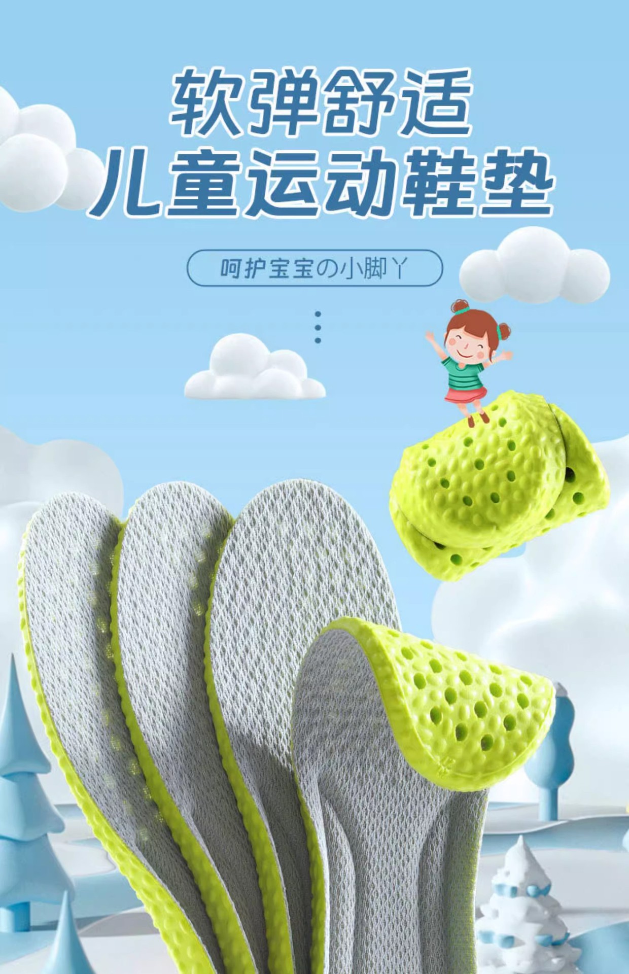 어린이 스포츠 깔창, 쑥, 통기성, 땀 흡수성, 탈취제, 고탄성, 충격 흡수성, 똥 밟는 느낌, 남녀 아기 전용, 가을 겨울스토어 가기