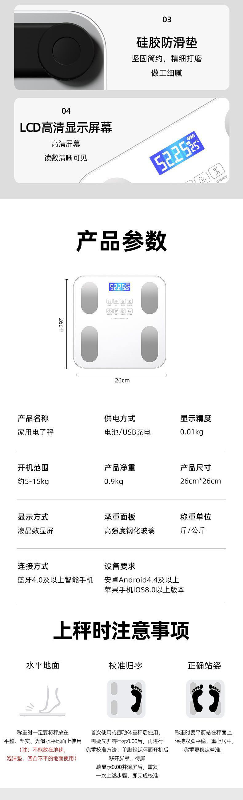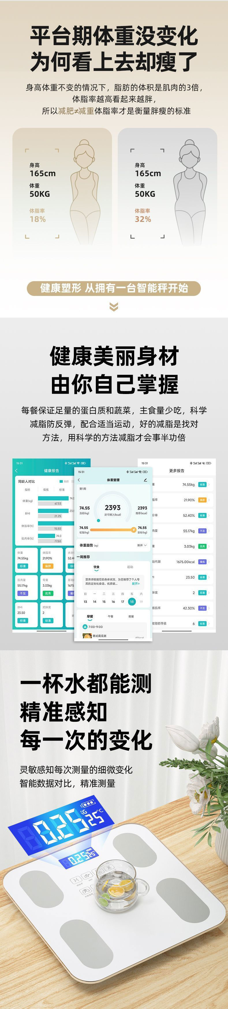 • 배터리 모델 [APP 체지방 측정기]는 지방을 정확하게 측정하고 지능적으로 분석합니다.