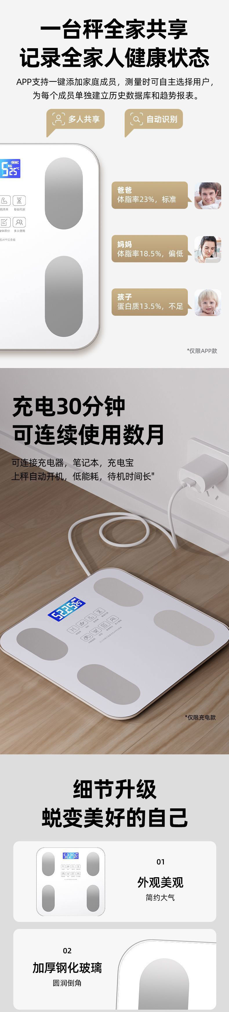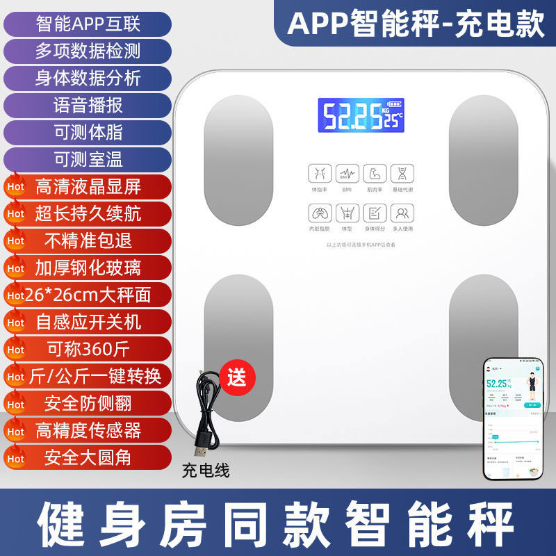 가정용 무게 규모 정밀 전자 규모 지능형 충전 포트 체지방 높은 정밀 블루투스 체지방 스케일 새로운 충전스토어 가기
