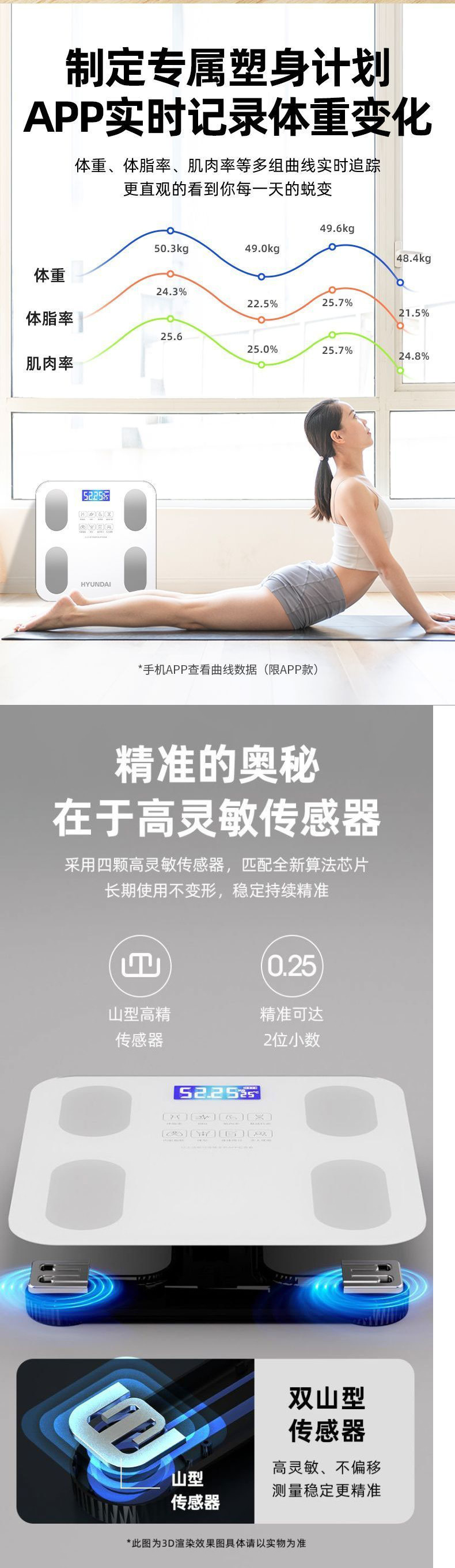 • 정확한 지방 측정과 지능형 분석을 갖춘 충전식 모델 [APP 체지방 측정기]