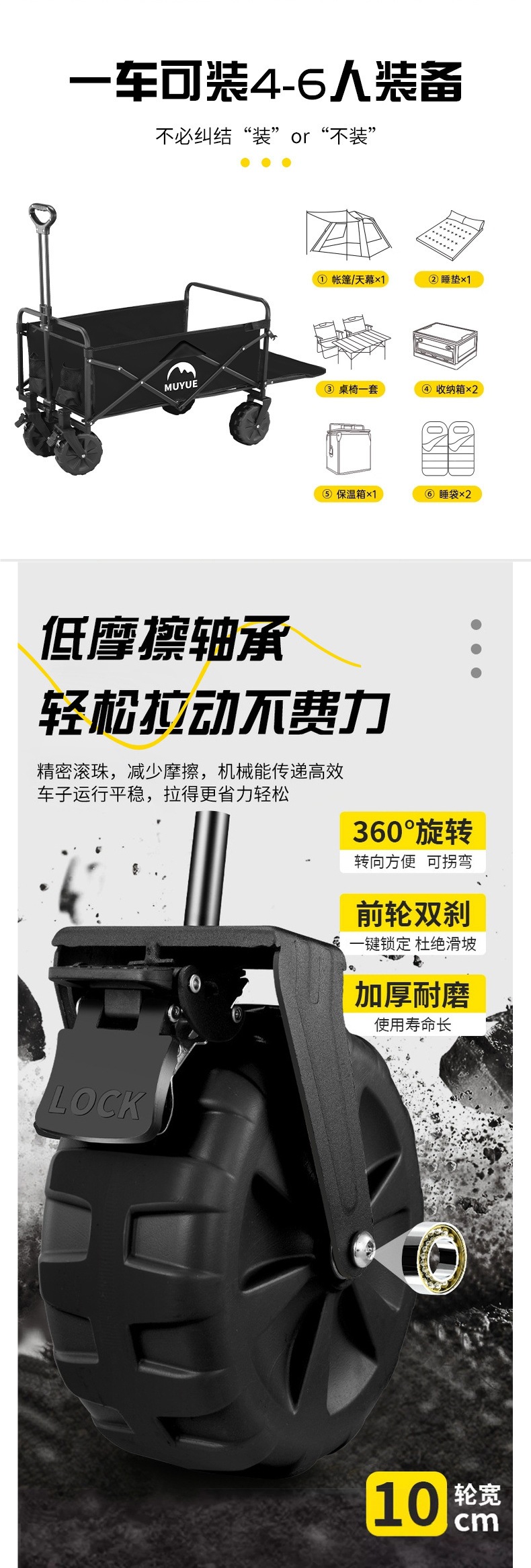 • 블랙 [이중 두꺼운 옥스포드 천] - 상단 구성 / 10inch 탱크 휠 / 더블 브레이크 + 강화된 블랙 테이블
