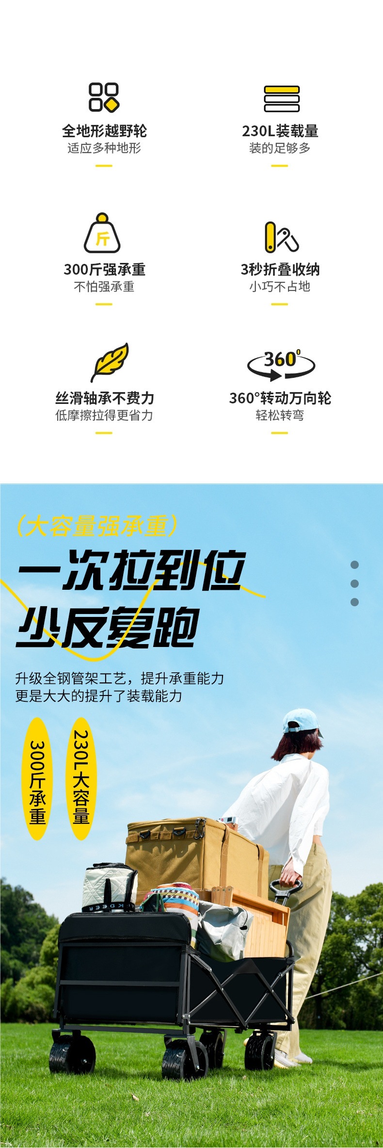 • 블랙 [이중 두꺼운 옥스포드 천] - 대형 / 8inch 오프로드 휠 / 더블 브레이크 / 티핑 버킷 스타일 + 나뭇결 테이블