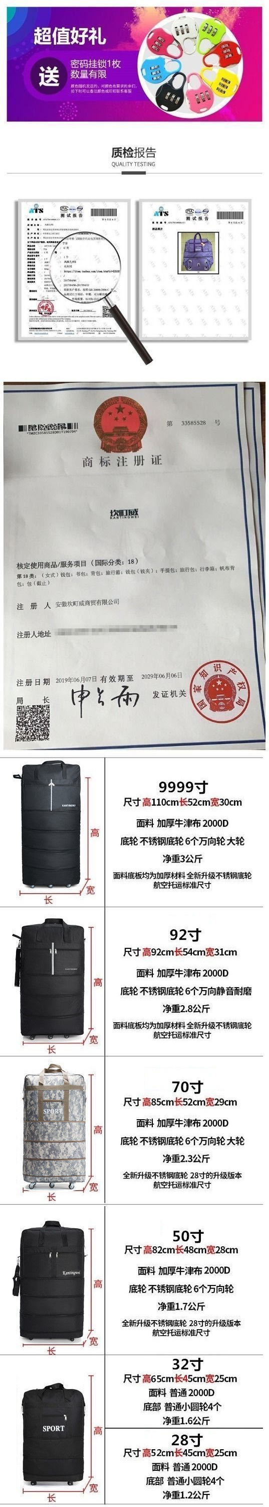 접이식 방수 158 항공 체크 가방 옥스포드 천 대용량 수하물 가방 바퀴 달린 가방 이동 가방스토어 가기