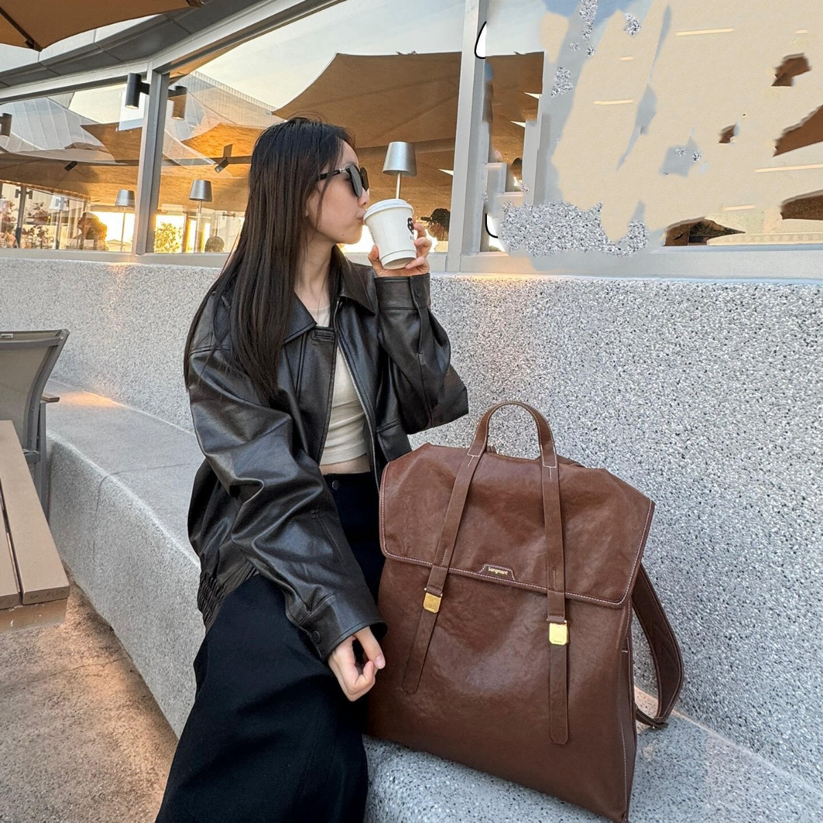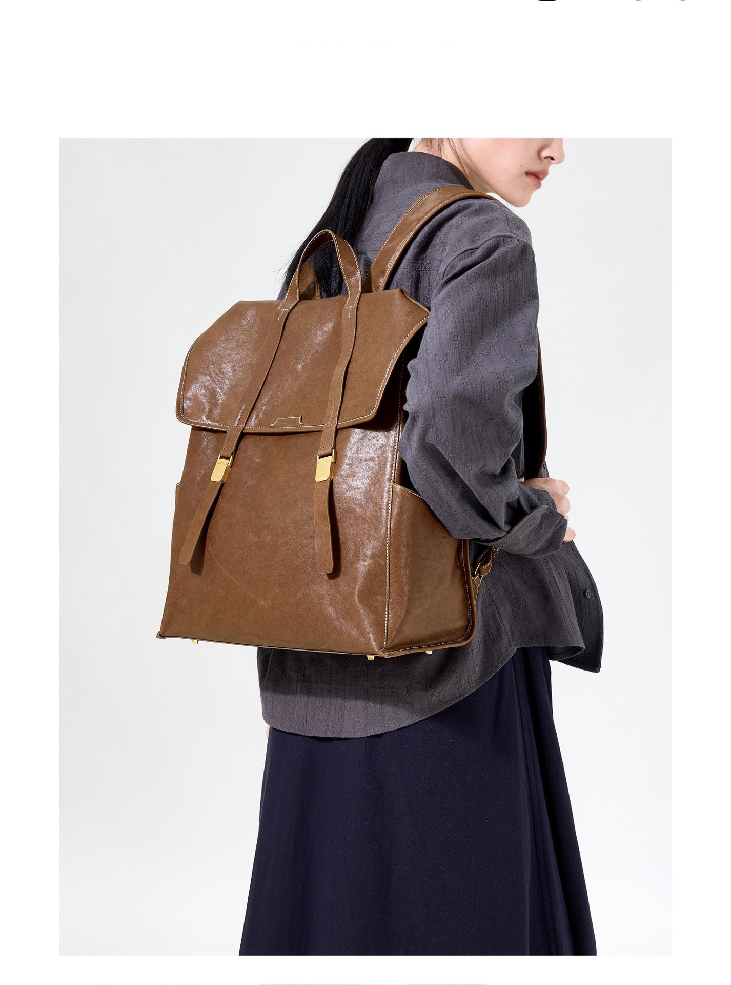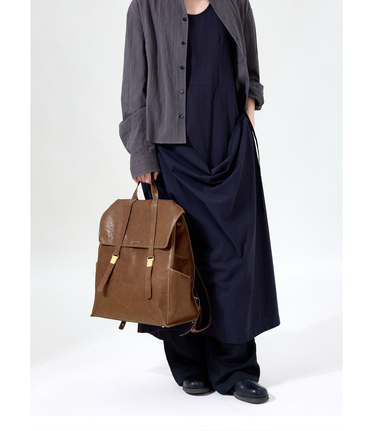 Yamashita Youshanxing 시리즈 Miye 대형 배낭 디자이너 베지터블 태닝 소가죽 대용량 여행용 컴퓨터 가방