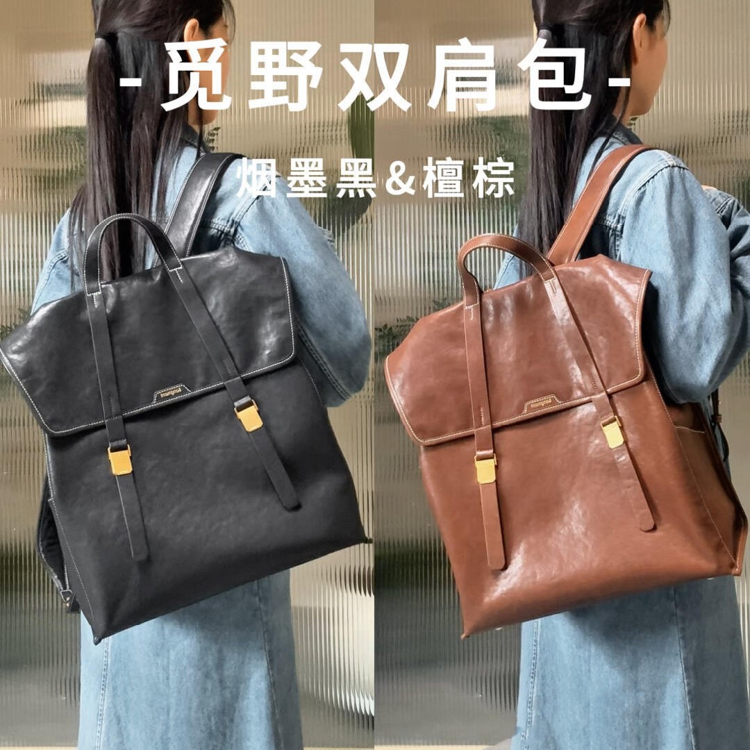 Yamashita Youshanxing 시리즈 Miye 대형 배낭 디자이너 베지터블 태닝 소가죽 대용량 여행용 컴퓨터 가방스토어 가기