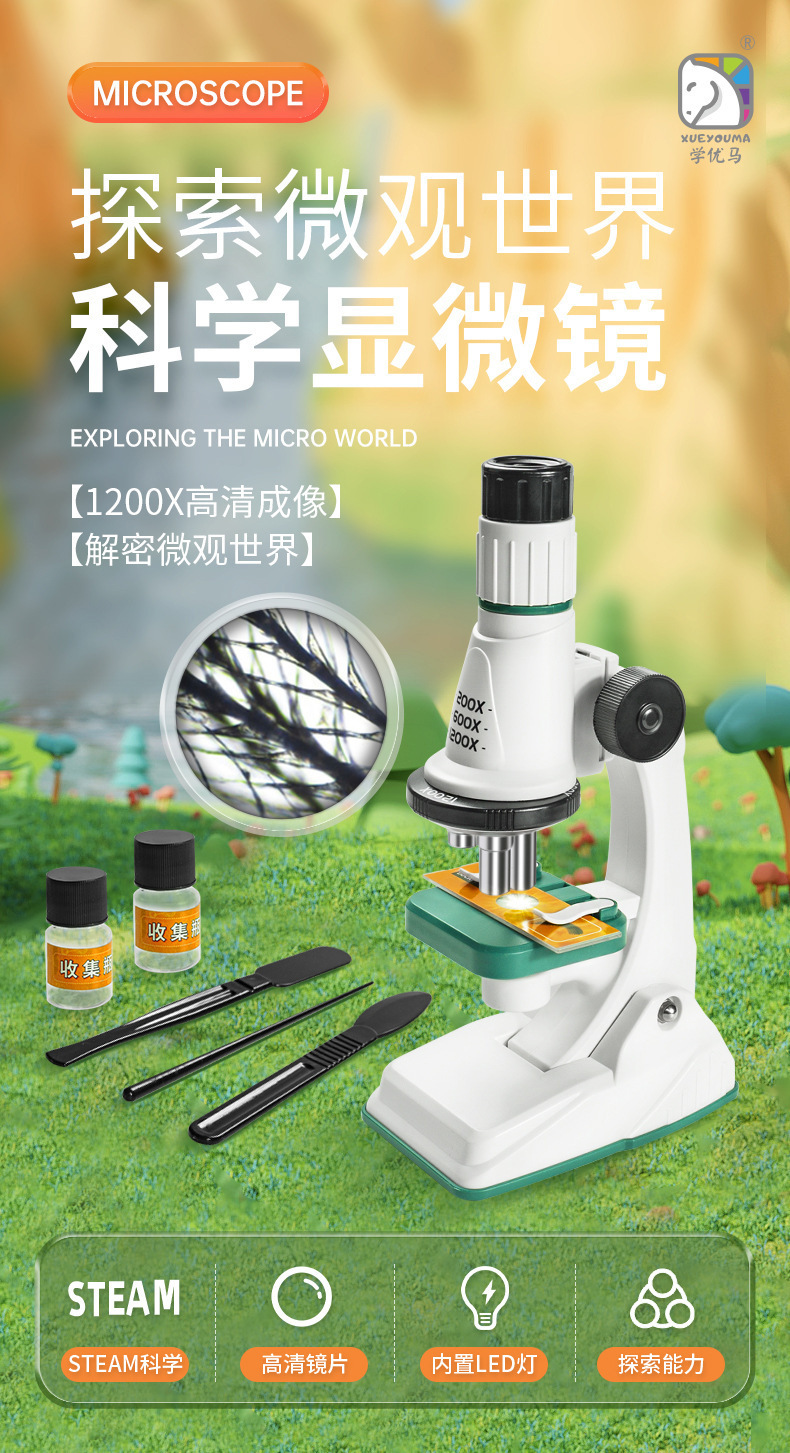 국경을 넘는 어린이용 현미경 교구 과학 실험 장난감 초중등학생용 휴대용 과학 교육 세트 교육용 디지털 제품스토어 가기
