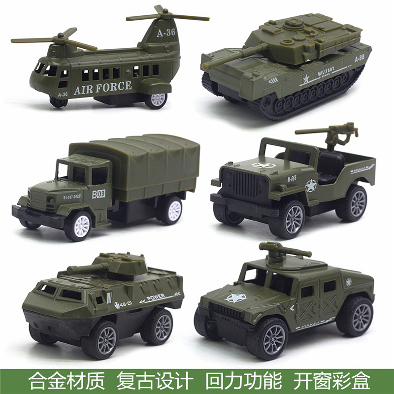6款合金复古军事车模型,1:64比例,合金材质,带回力功能