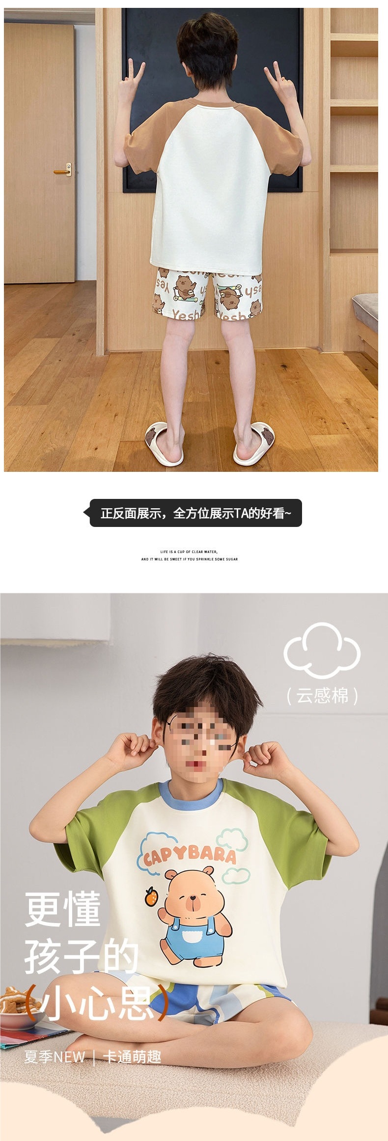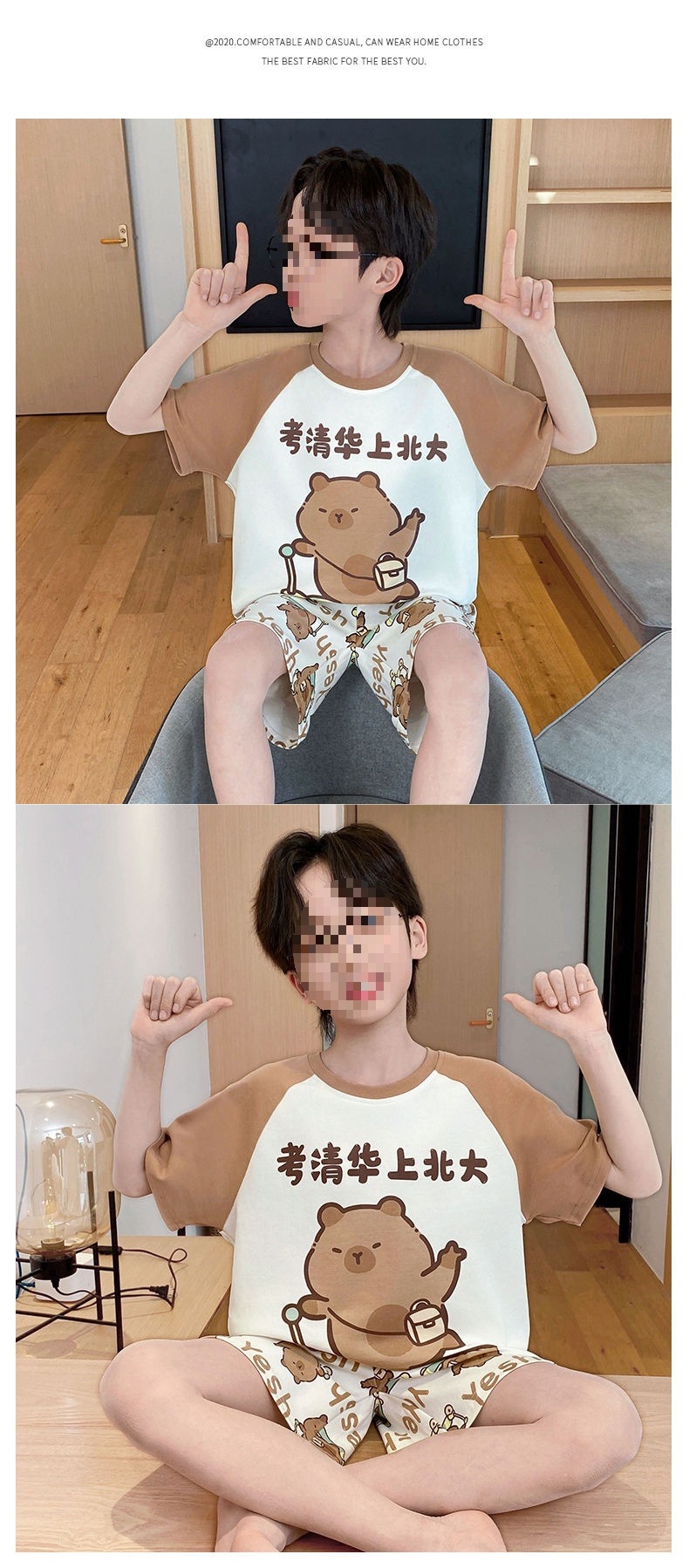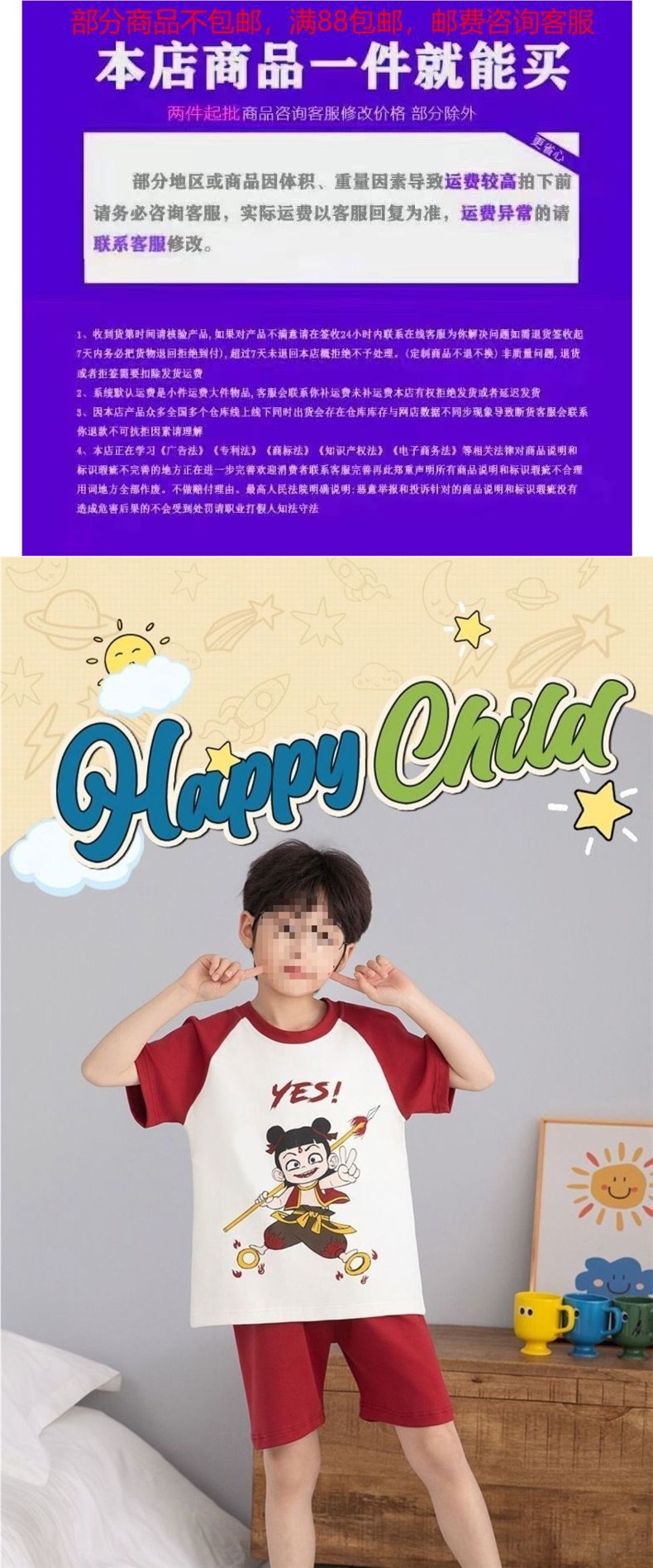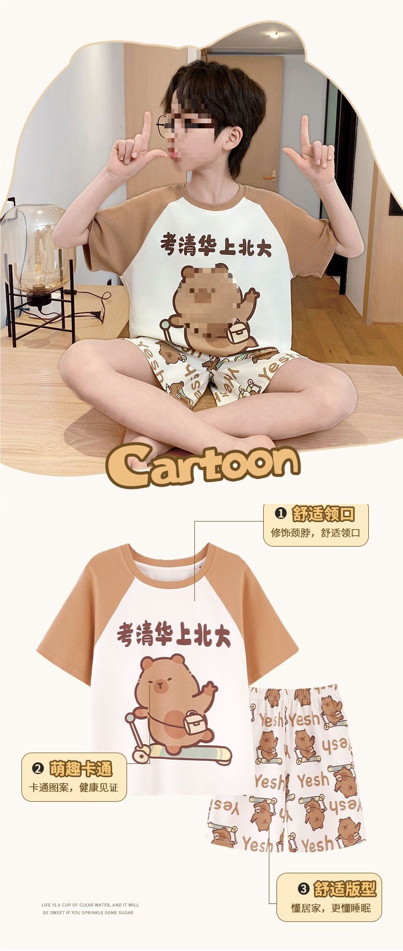 2025 새로운 만화 Nezha 소년 잠옷 여름 얇은 반팔 반바지 정장 소년 중대형 어린이 가정 의류스토어 가기