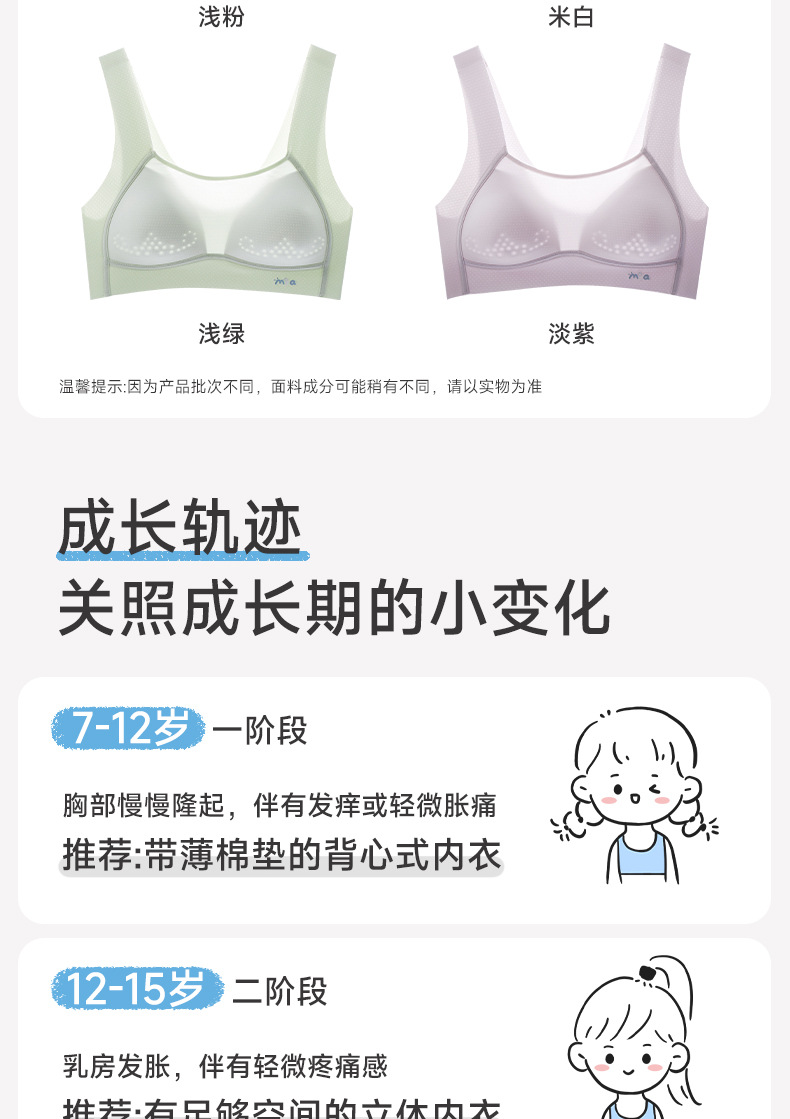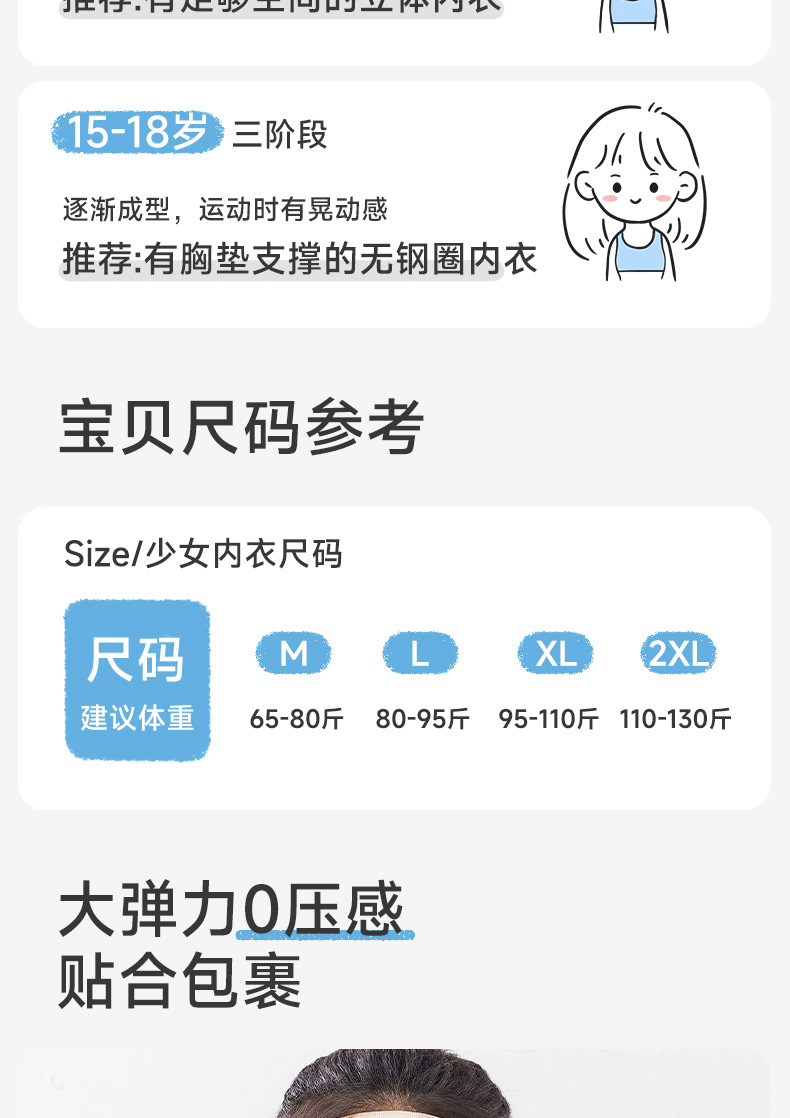 여아 속옷 중학교 고등학생 사춘기 개발 원활한 원피스 브래지어 소녀 스포츠 충격 방지 조끼스토어 가기