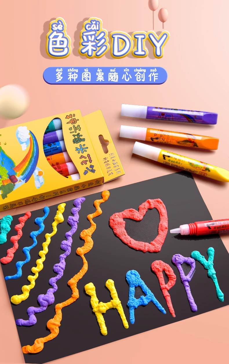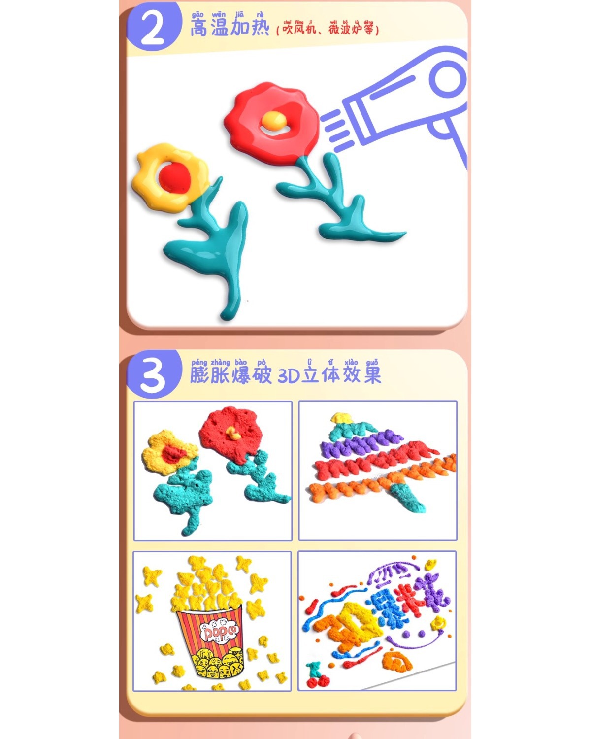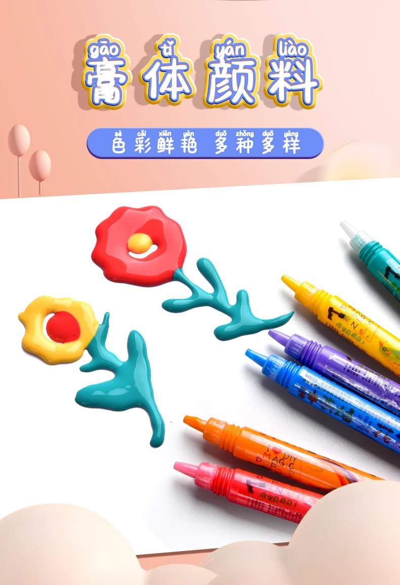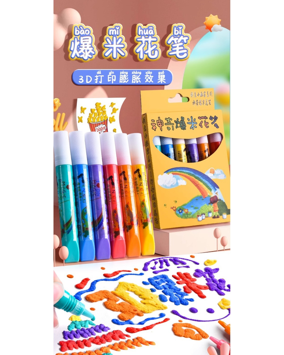 6색 마법의 팝콘 펜, 창의적인 3D 버블 펜, 어린이의 상상력을 발휘하는 재미있는 맞춤형 낙서