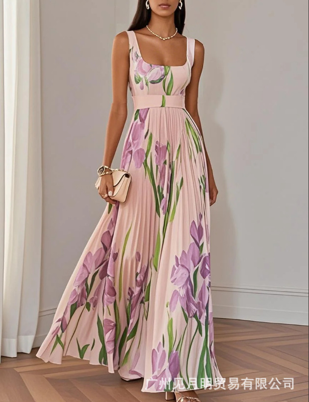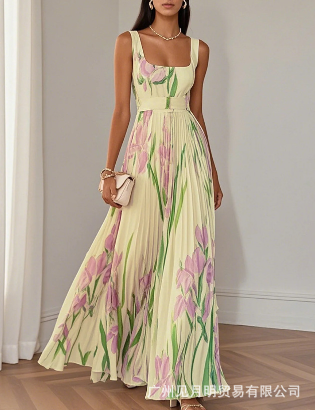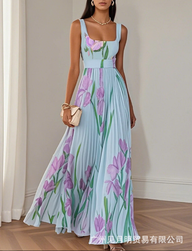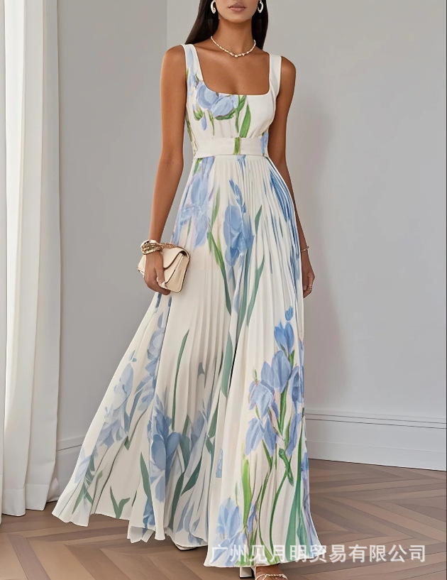 2025 shein 크로스보더 아마존 ins 유럽과 미국 독립 스테이션 드레스 주름 프린트 드레스 새로운 핫 스타일