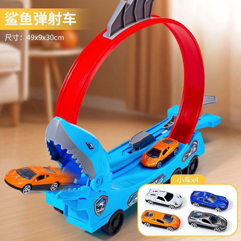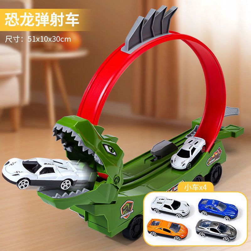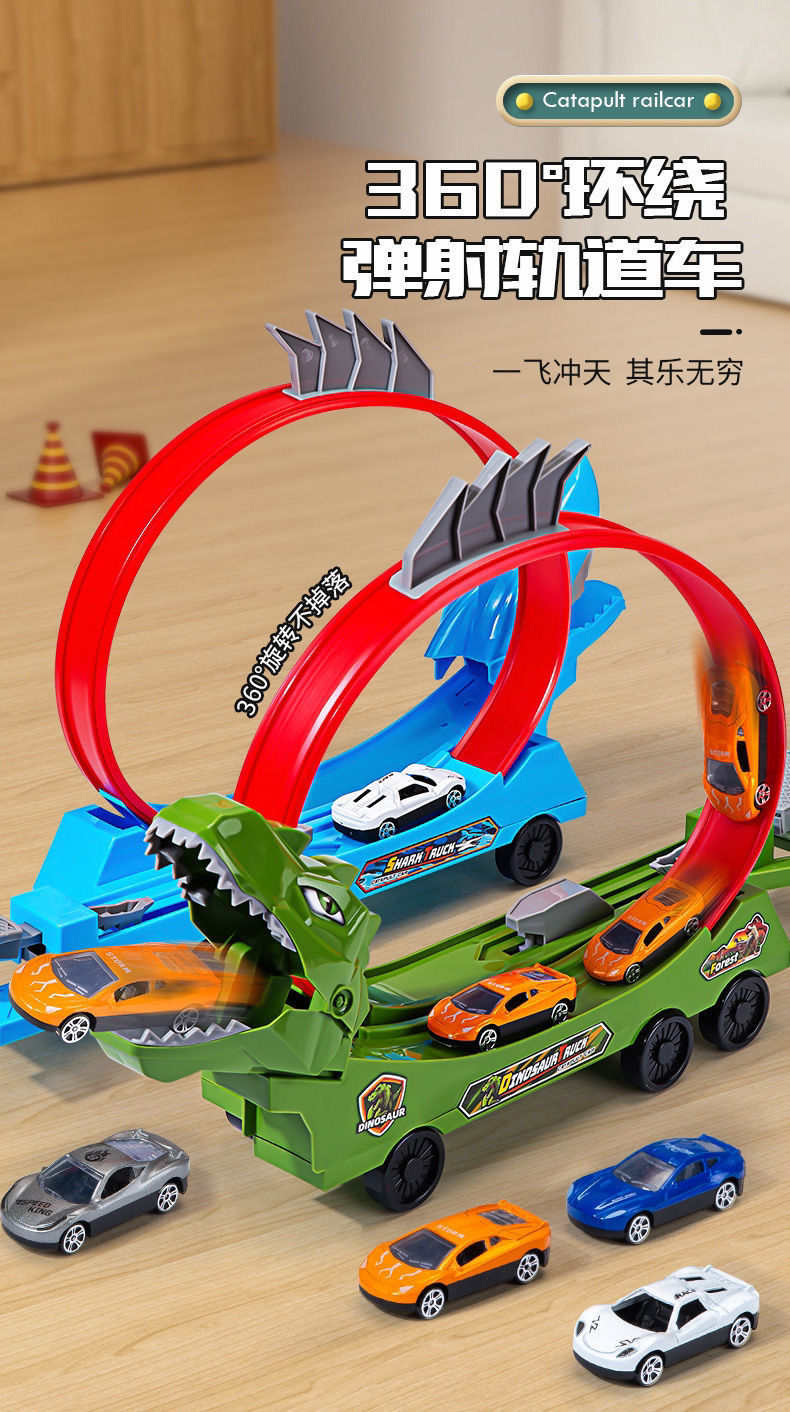 폭발성 어린이 투석기 자동차 공룡 상어 삼켜 자동차 장난감 자동차 소년 무료 조립 레일 자동차 장난감스토어 가기