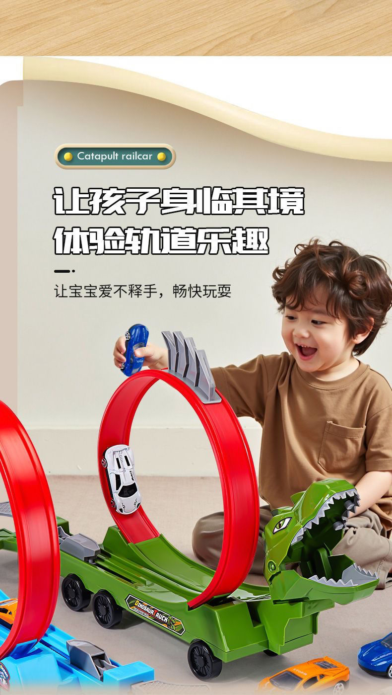 • 공룡탄성궤도차 + 4.2cm 철제자동차 8대 [전자상거래 상자]