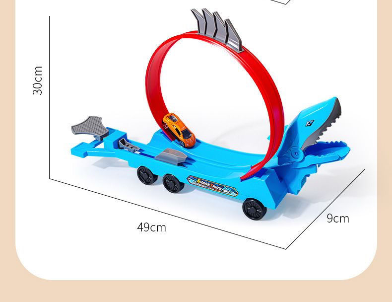 • 상어 방출 궤도차 + 4.2cm 철제 자동차 8대 [전자상거래 상자]