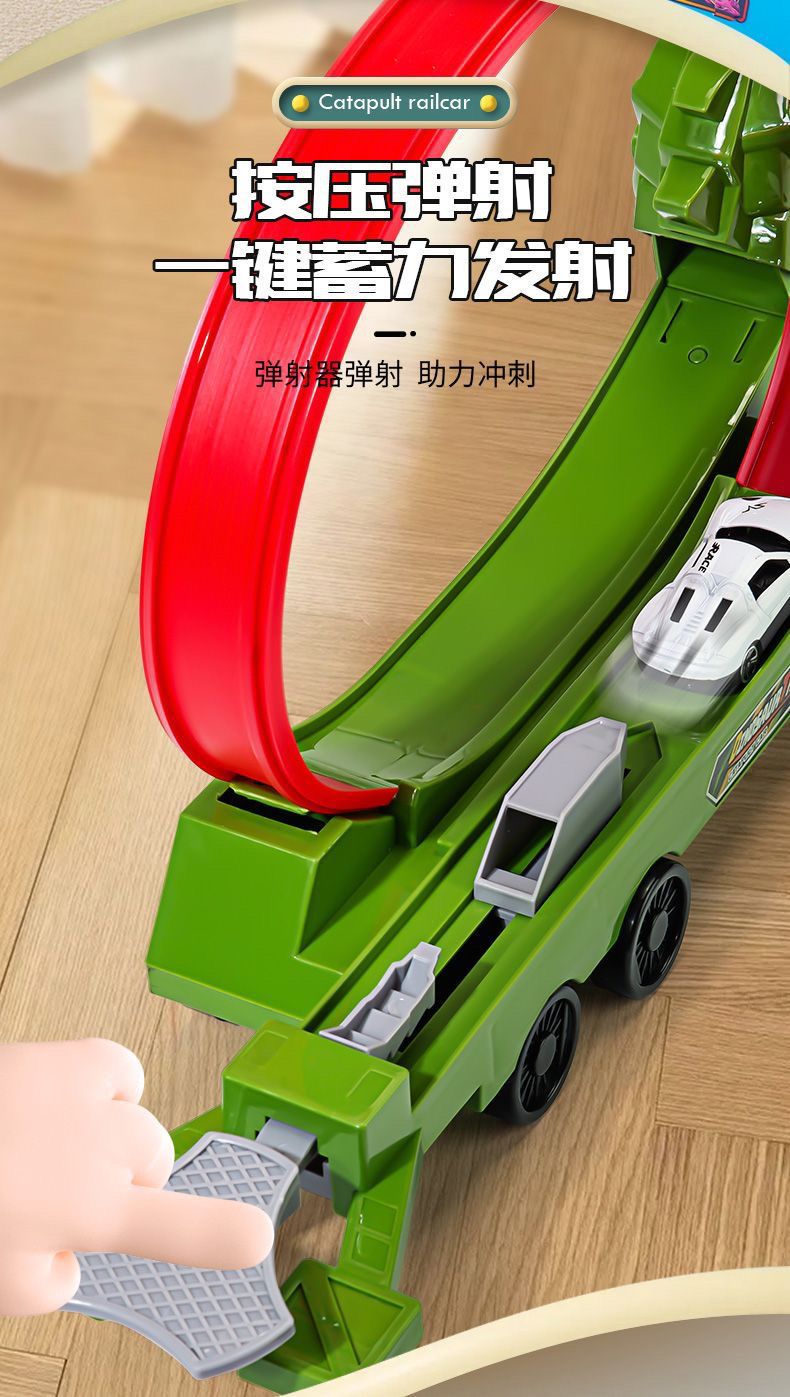 • 공룡탄성궤도차 + 4.2cm 철제자동차 4대 [전자상거래 상자]
