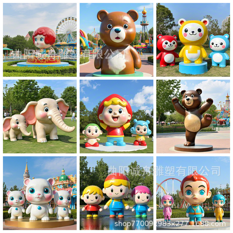 유리섬유 만화 조각 애니메이션 IP 조각 곰과 코끼리 친환경 페인트 공원 놀이터 조각 장식품