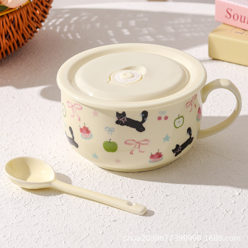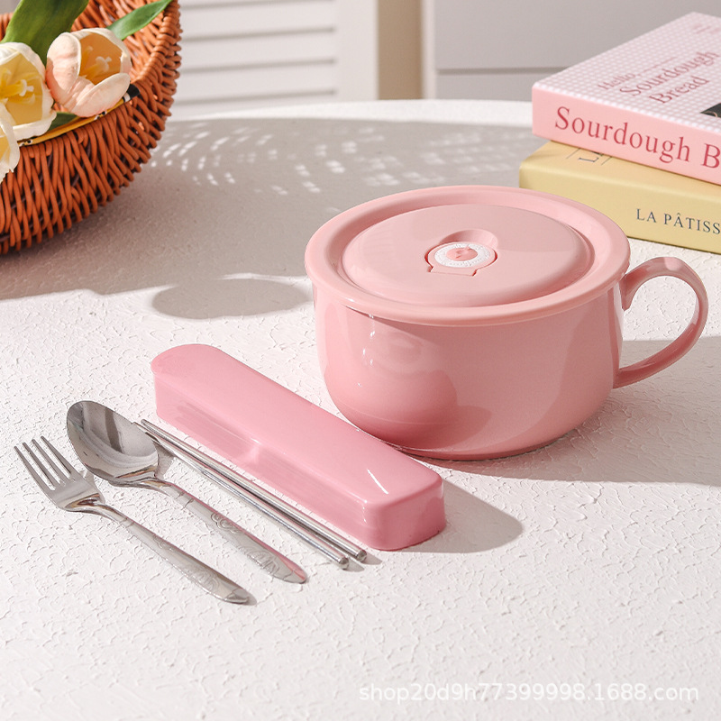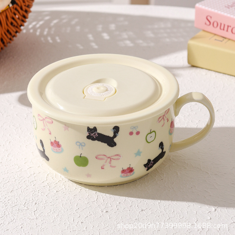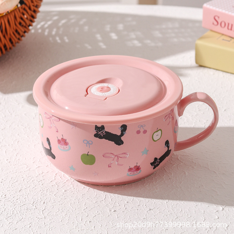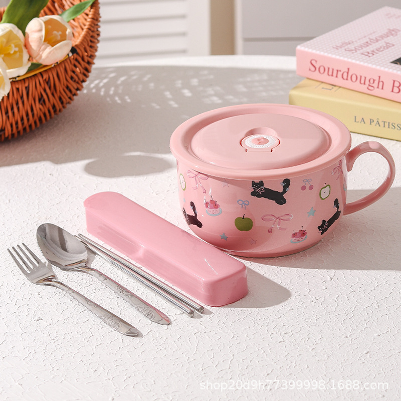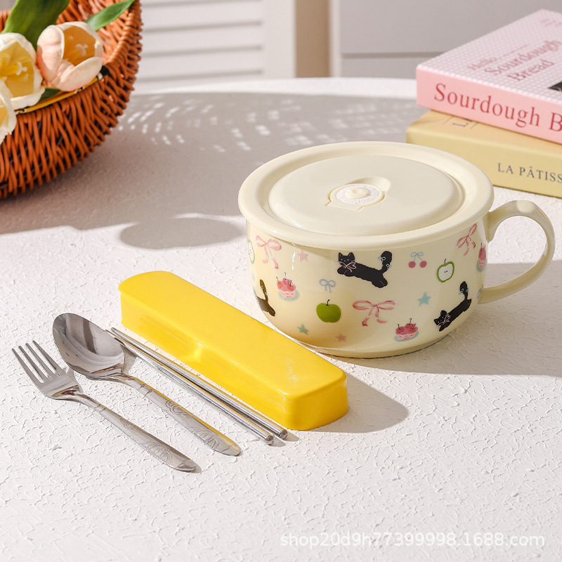 뚜껑 세라믹 국수 그릇 귀여운 여성 학생 기숙사 홈 수프 그릇 뚜껑 전자 레인지스토어 가기
